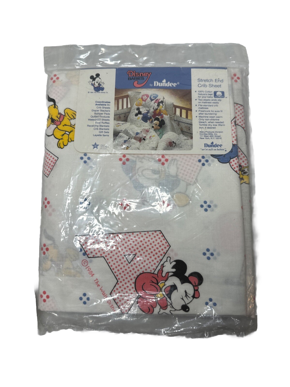 VTG Disney Babies Dundee Crib Sheet ABCs Mickey Minnie Pluto 28 x 52 NEW READ