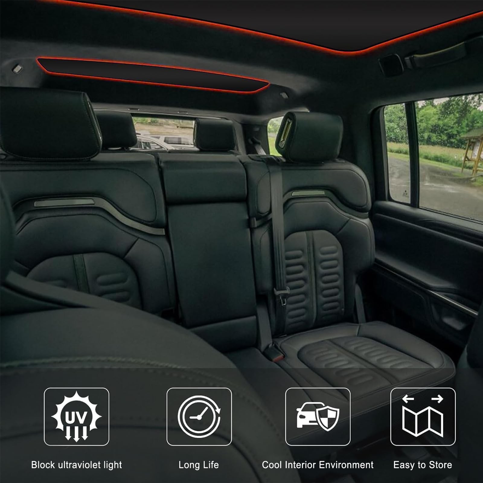 как выглядит 2Pcs Roof Sunshade fit for Rivian R1S Front Rear Sunshade Heat Insulation UV фото