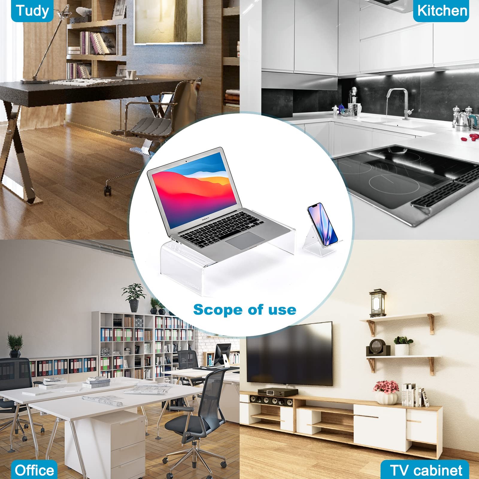 Premium Acrylic Monitor Stand Clear Laptop Riser for Desk, Office and Home ...