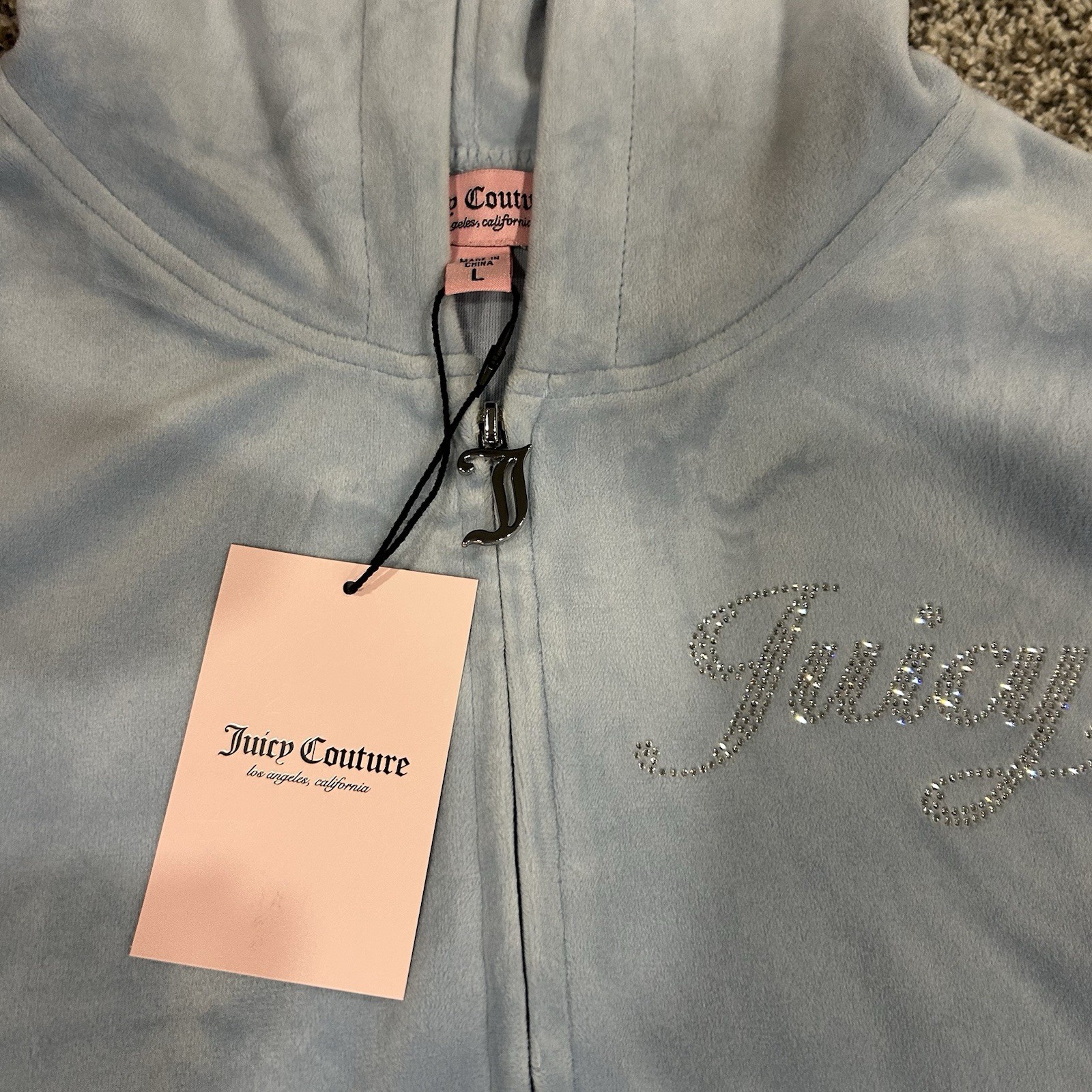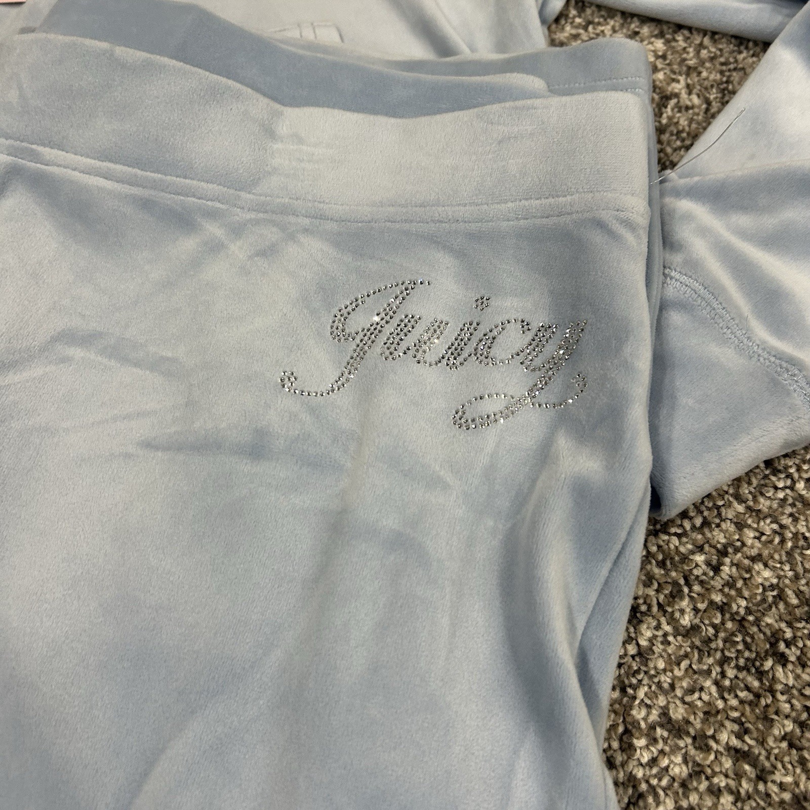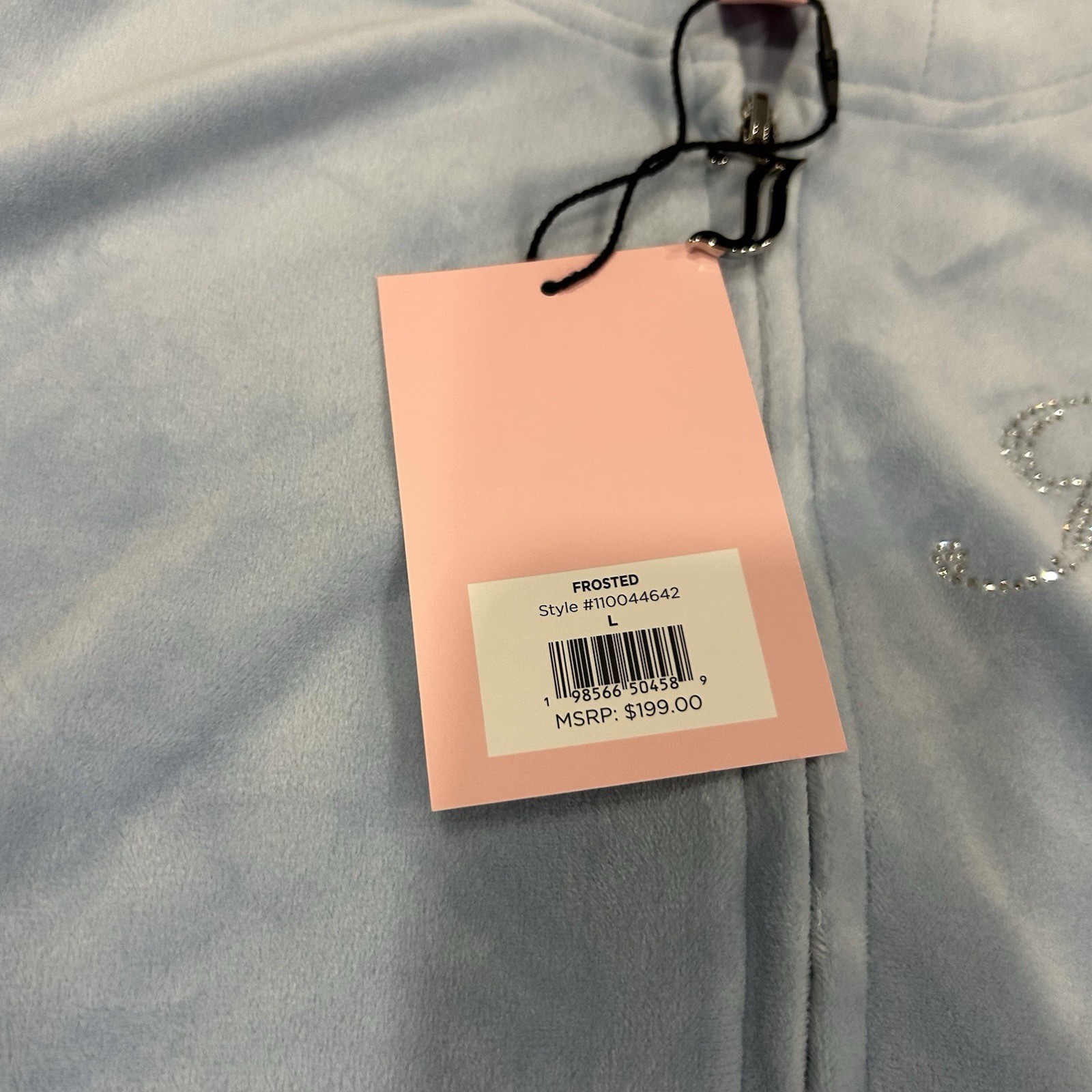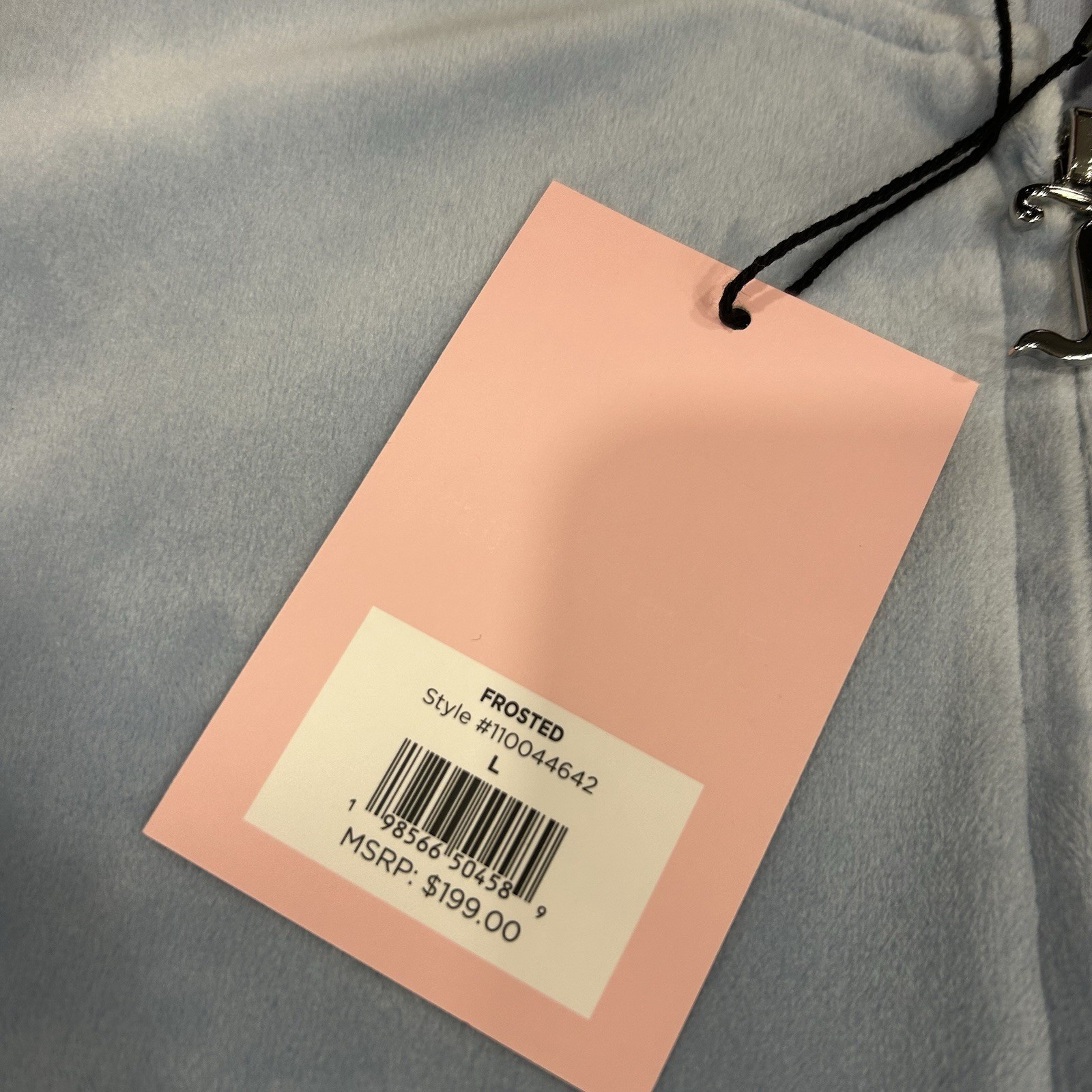 NWT JUICY COUTURE Size L Velour Bling Tracksuit Hoodie Pants Set Frosted Blue