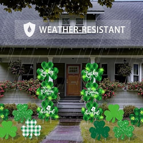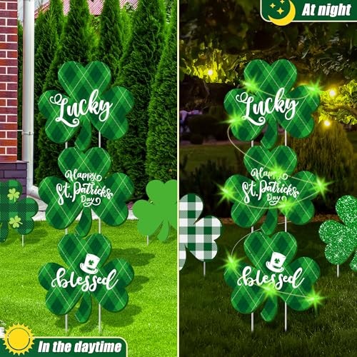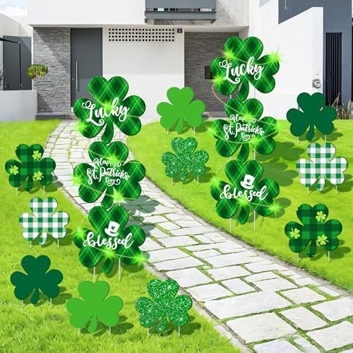 16 Pieces St. Patrick's Day Decorations Outdoor Yard Signs with Stakes LED