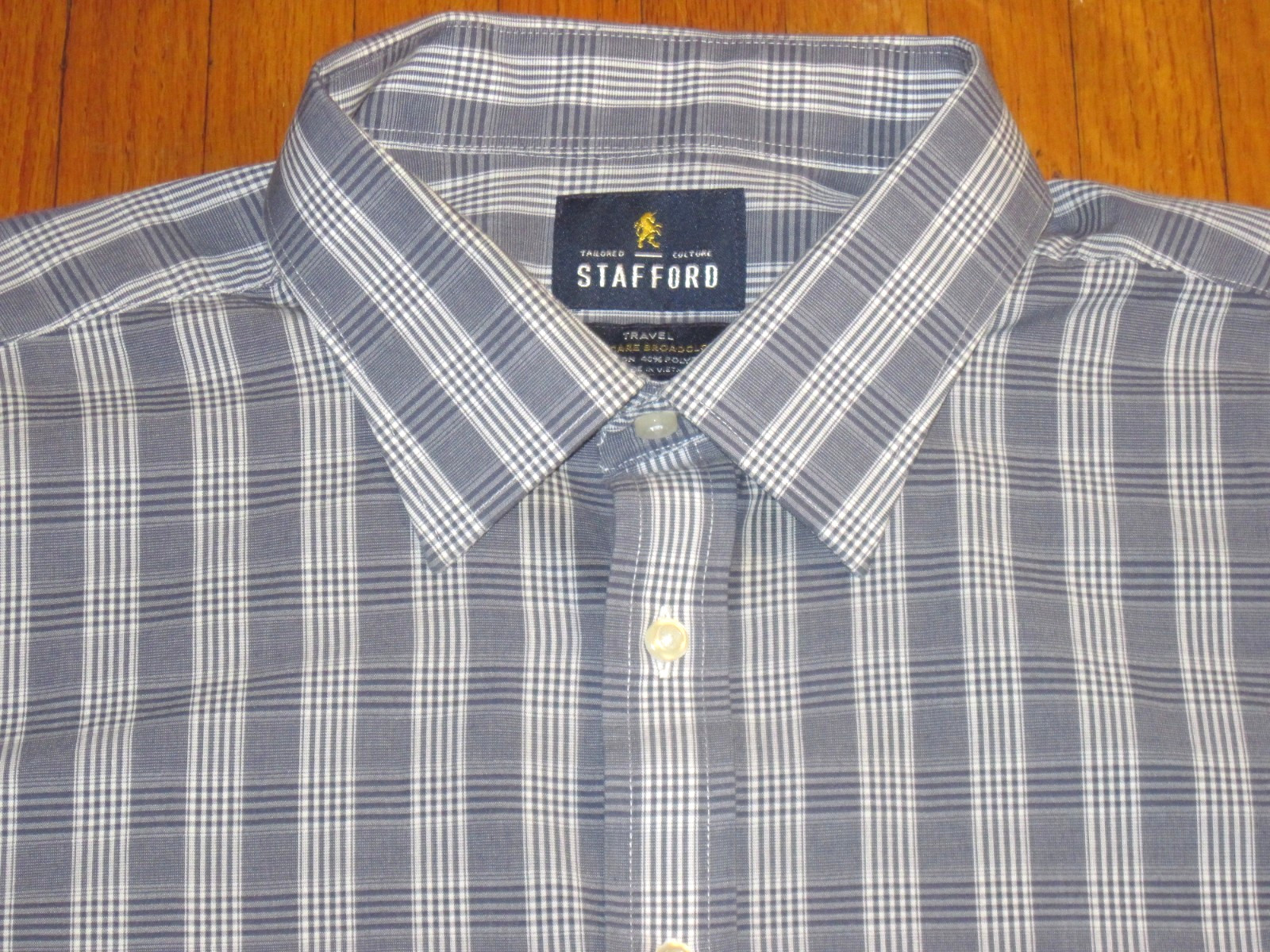 как выглядит Stafford Travel 2XL-18-36/37 Easy Care Broadcloth Gray Check Dress Shirt New фото