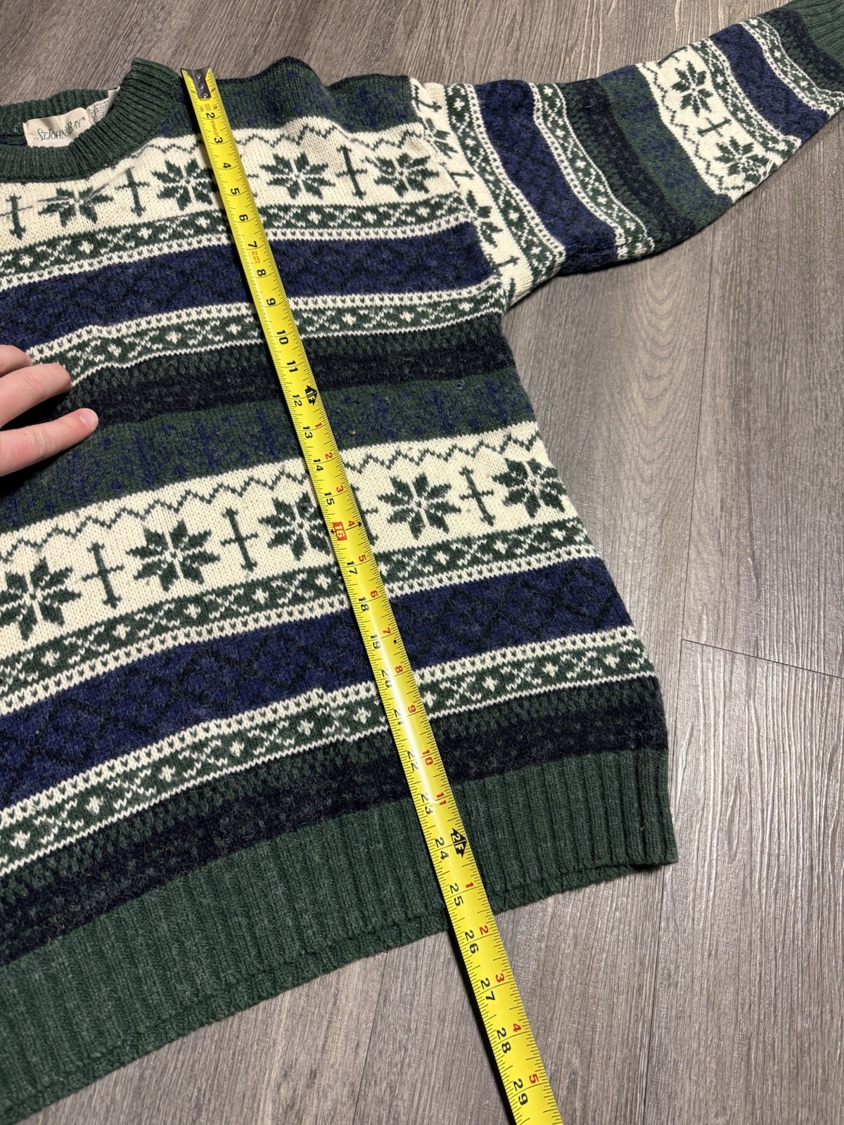 как выглядит Vintage Knitted Jumper Abstract Patterned Grandad Knit Sweater Mens L Green фото