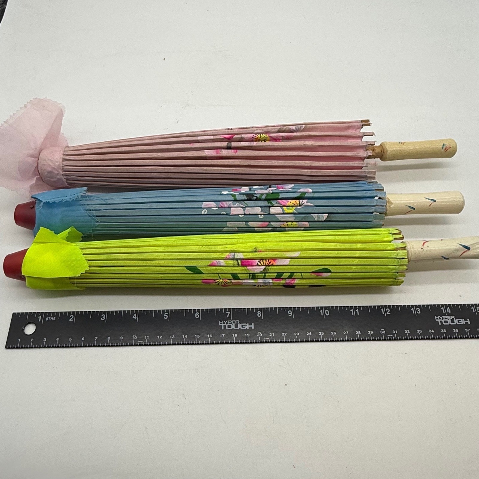 Paper parasol Umbrella lot Blue Green Floral Cherry Blossom Bamboo SEE NOTE
