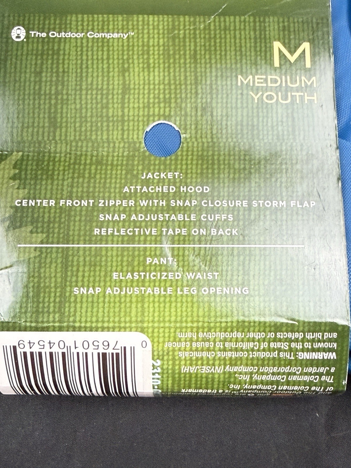 COLEMAN Rain Defense EVA Jacket Pants Suit Youth Blue MEDIUM, NEW