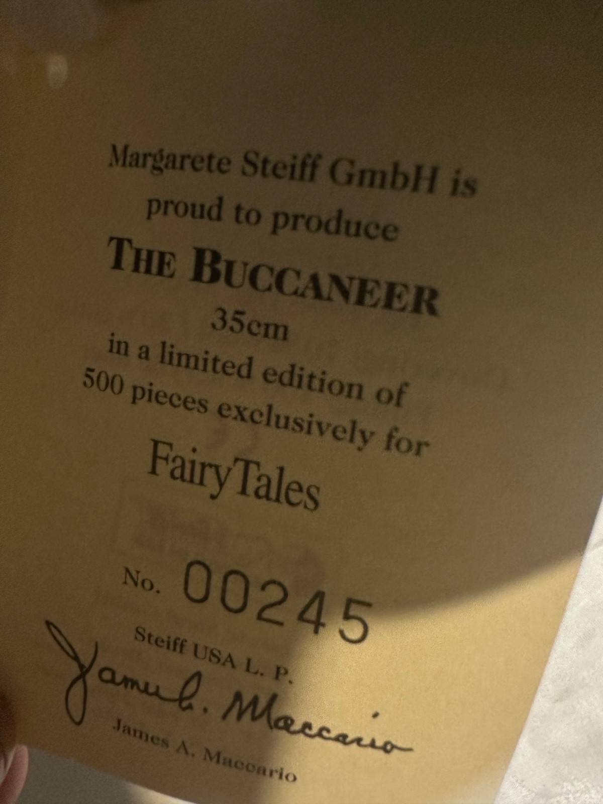 Vintage Steiff The Buccanneer Bear 245 of 500 1996 limited edition Fairy Tales