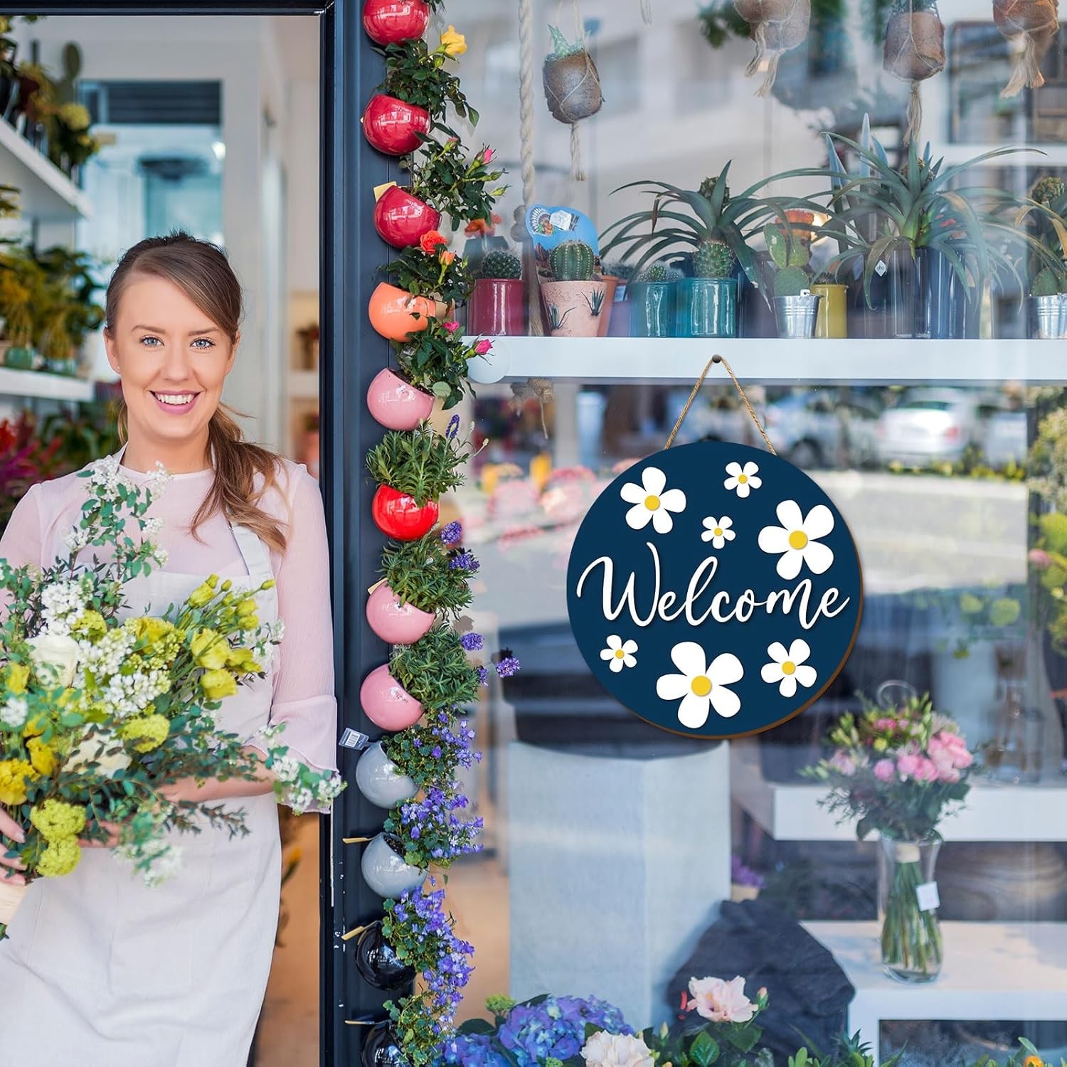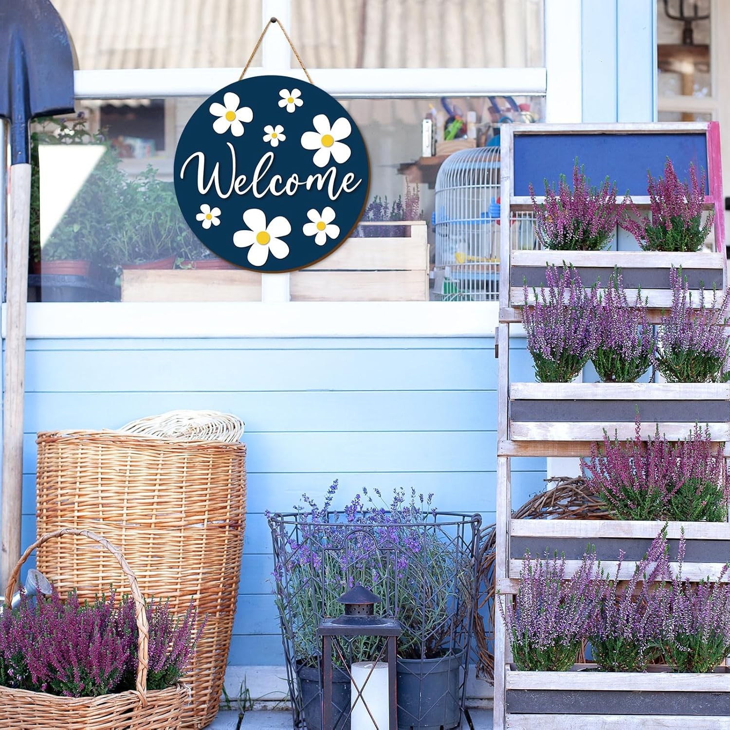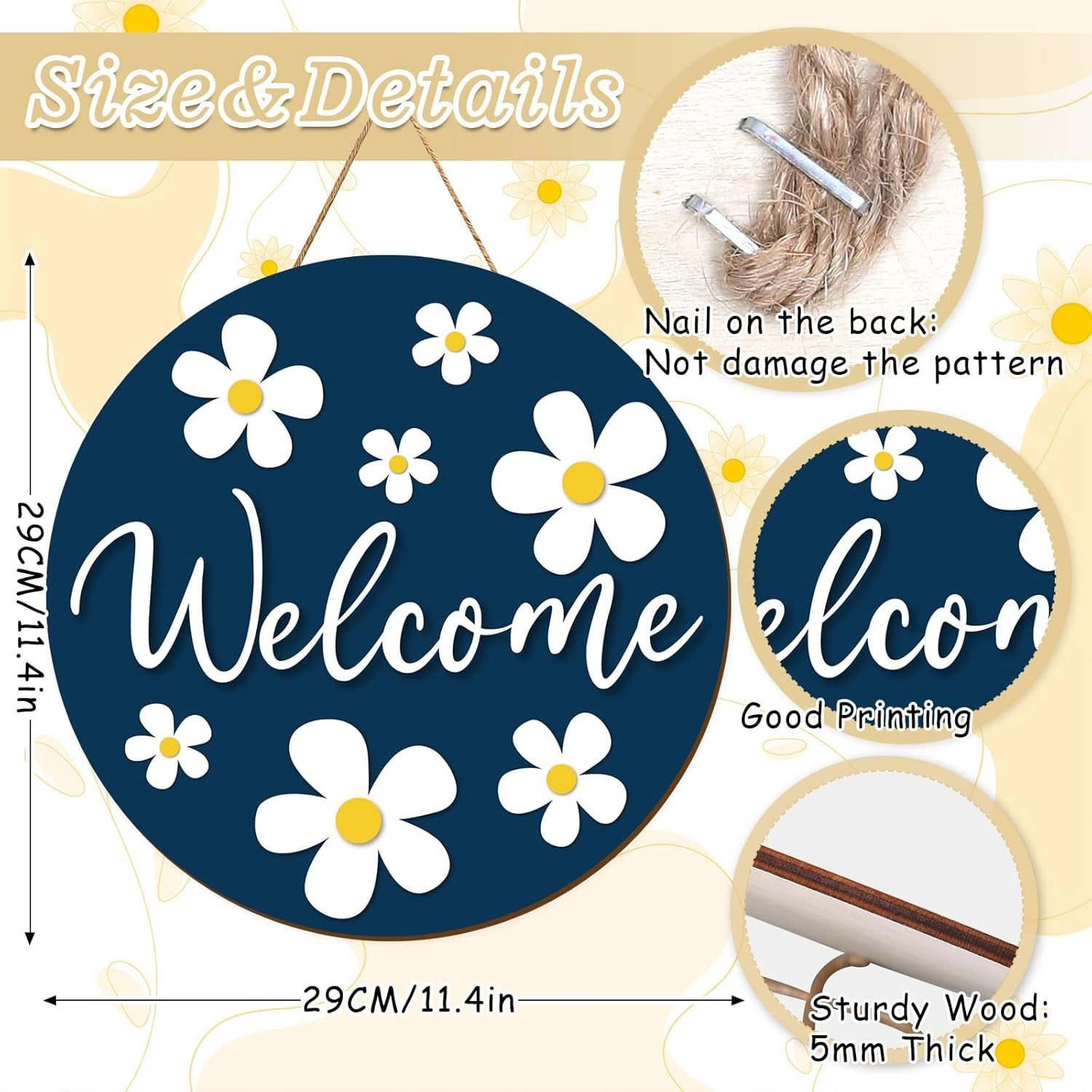 Daisy Welcome Wooden Hanging Sign Spring Daisy Flower Door Sign Farmhouse Rustic