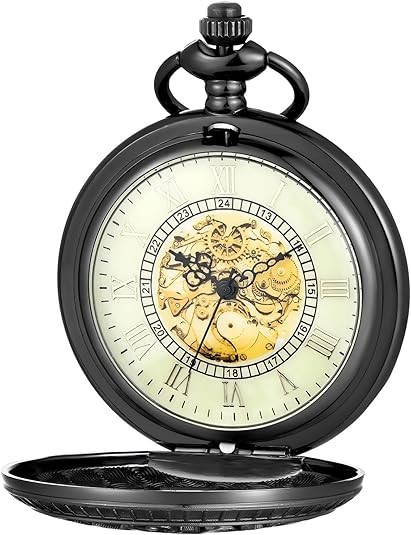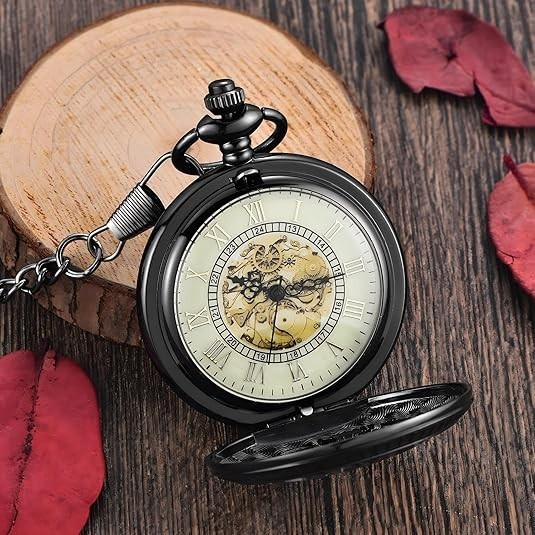 Vintage Pocket Watch for Men with Roman Numerals and Chain, 1Pc