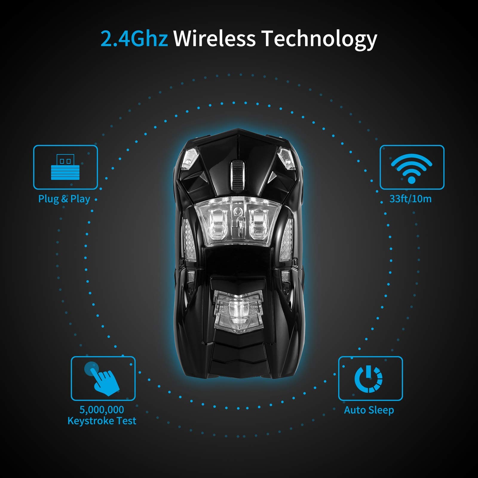 Car Shaped Wireless Mouse with LED Headlights 1600 DPI for PC Mac