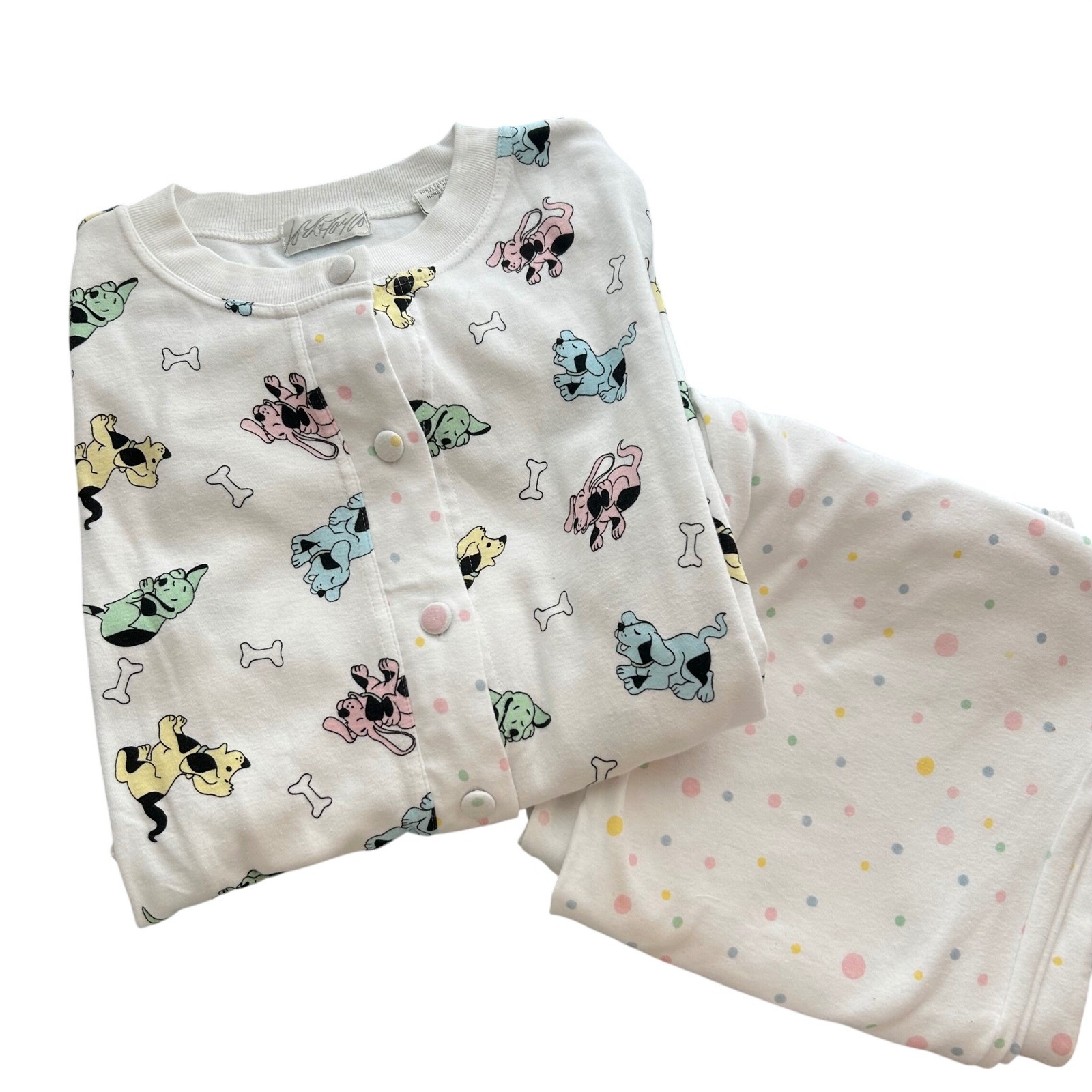 Lord Taylor VTG 90s Y2K Dog Print Cotton Pajama Set CottageCore Comfy Cute Dot