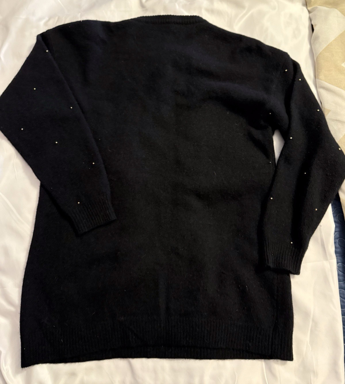 Christmas Sweater Sz M Black Lambswool Angora Mock Neck Long Slv vtg 80's