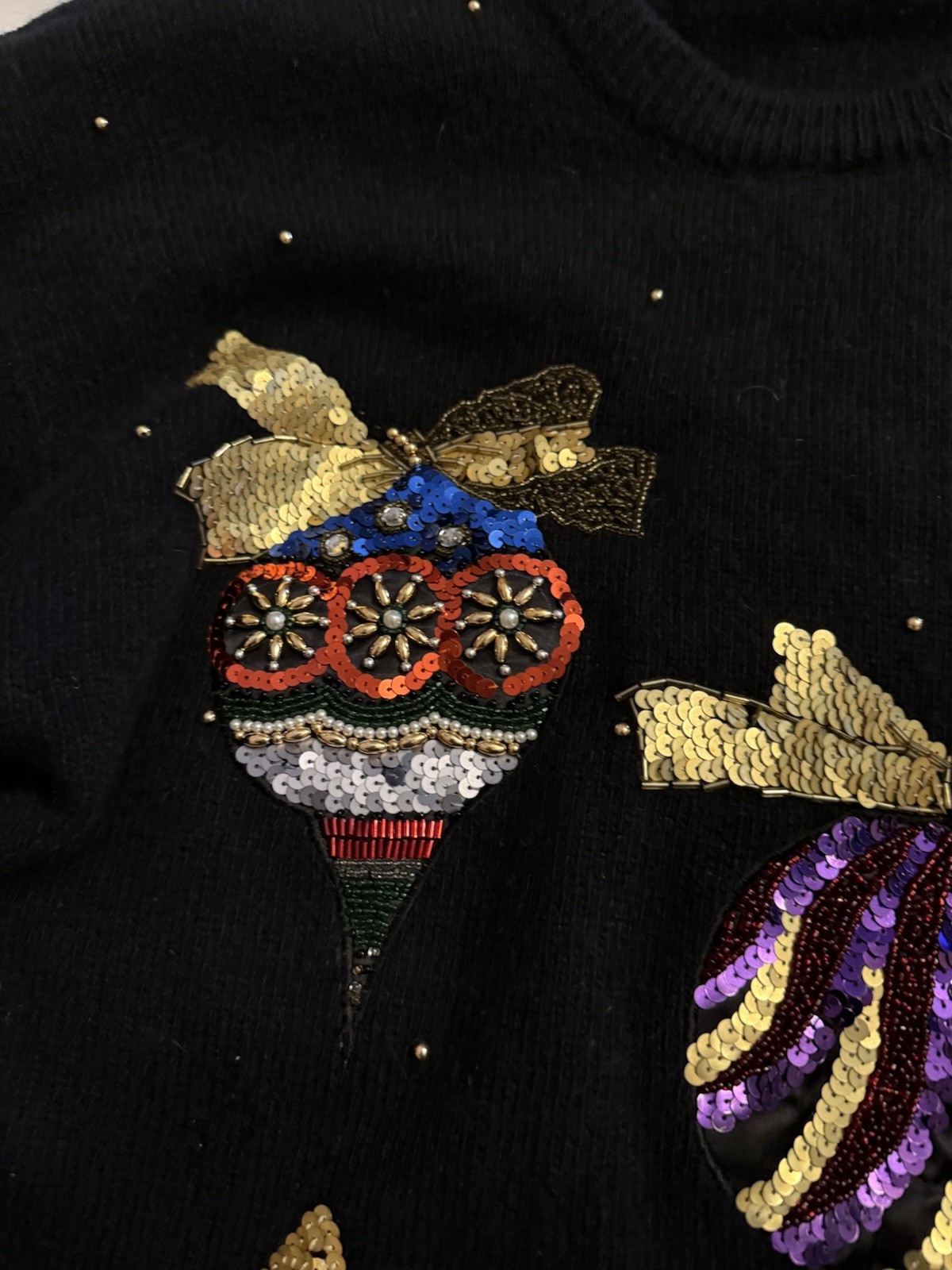 как выглядит Christmas Sweater Sz M Black Lambswool Angora Mock Neck Long Slv vtg 80s фото