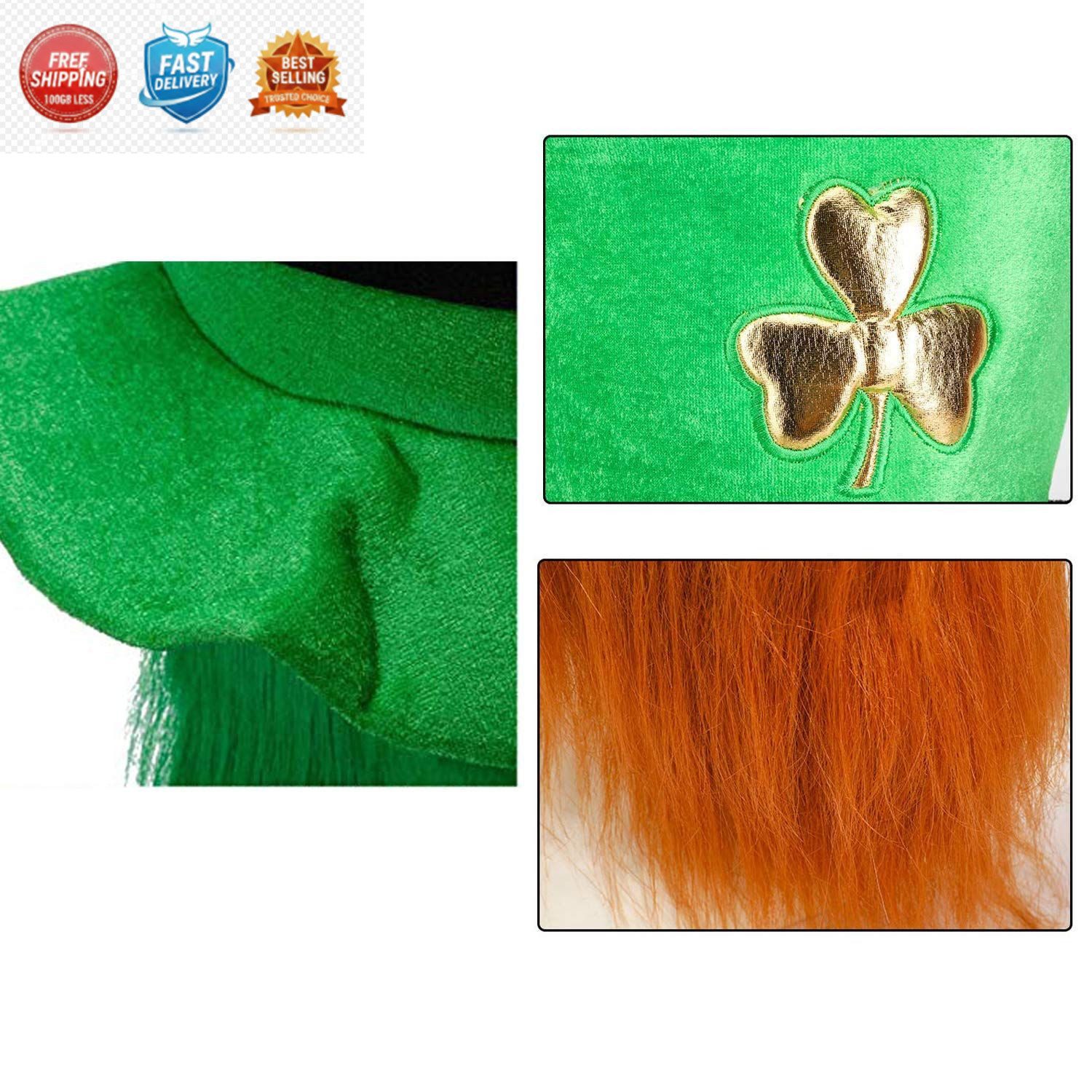 как выглядит St. Patricks Day Green Leprechaun Top Hat with Beard Irish Shamrock Velvet... фото