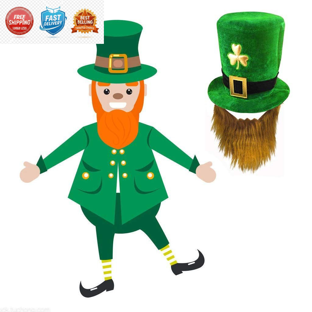 St. Patrick's Day Green Leprechaun Top Hat with Beard Irish Shamrock Velvet...