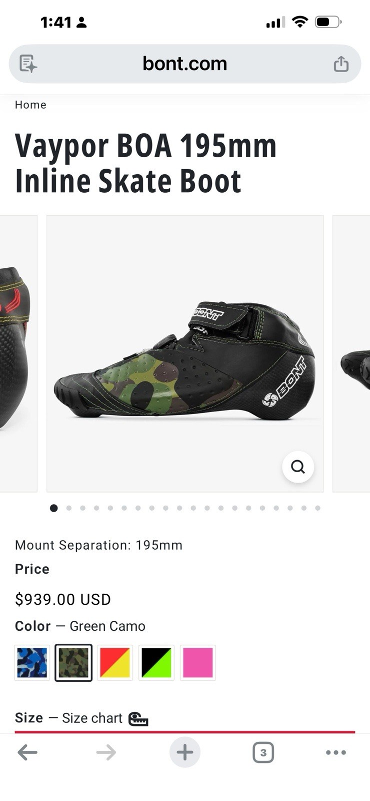 как выглядит Bont Vaypor Boa Inline Skate Boots Camouflage Green Carbon Fiber Size 11.5 Wide фото