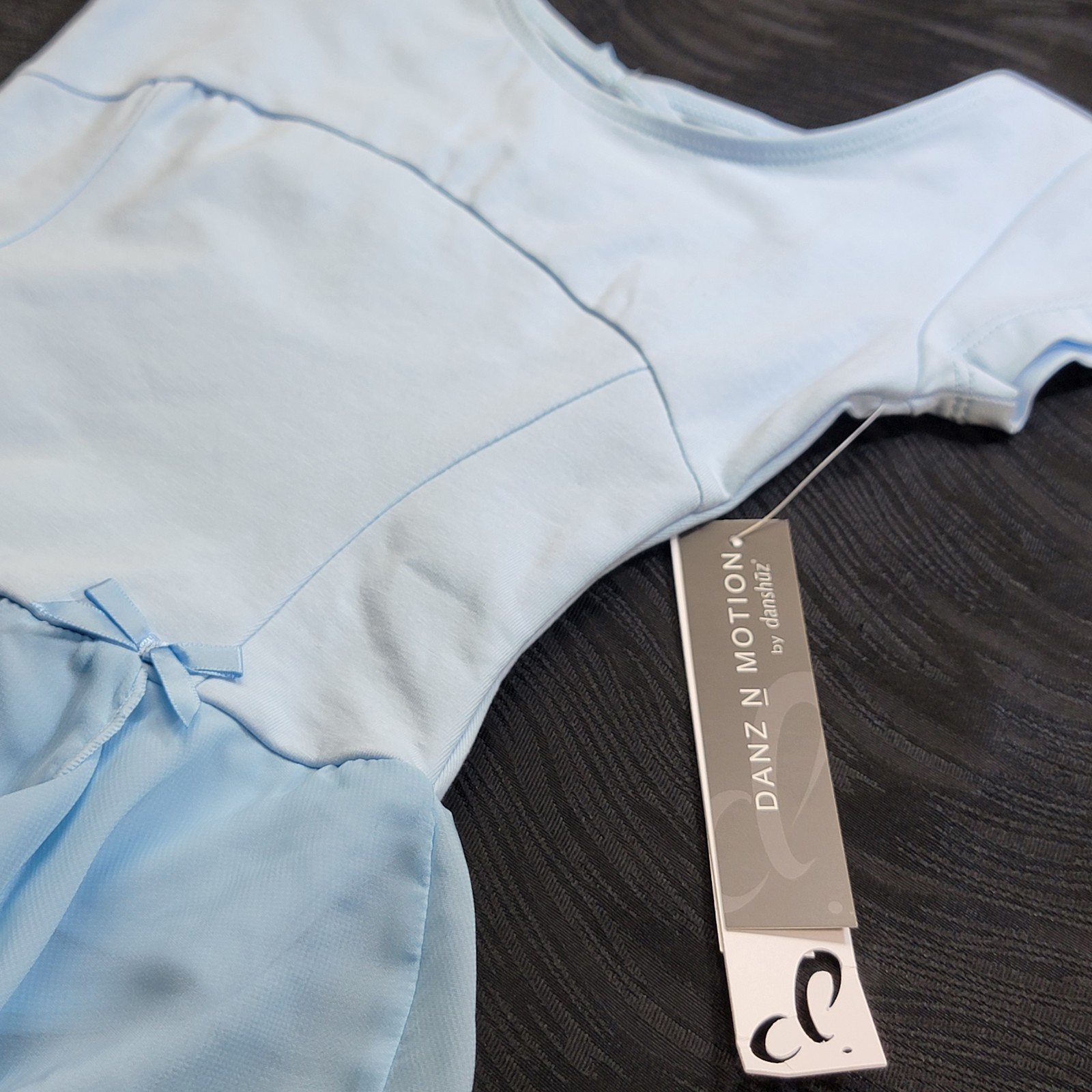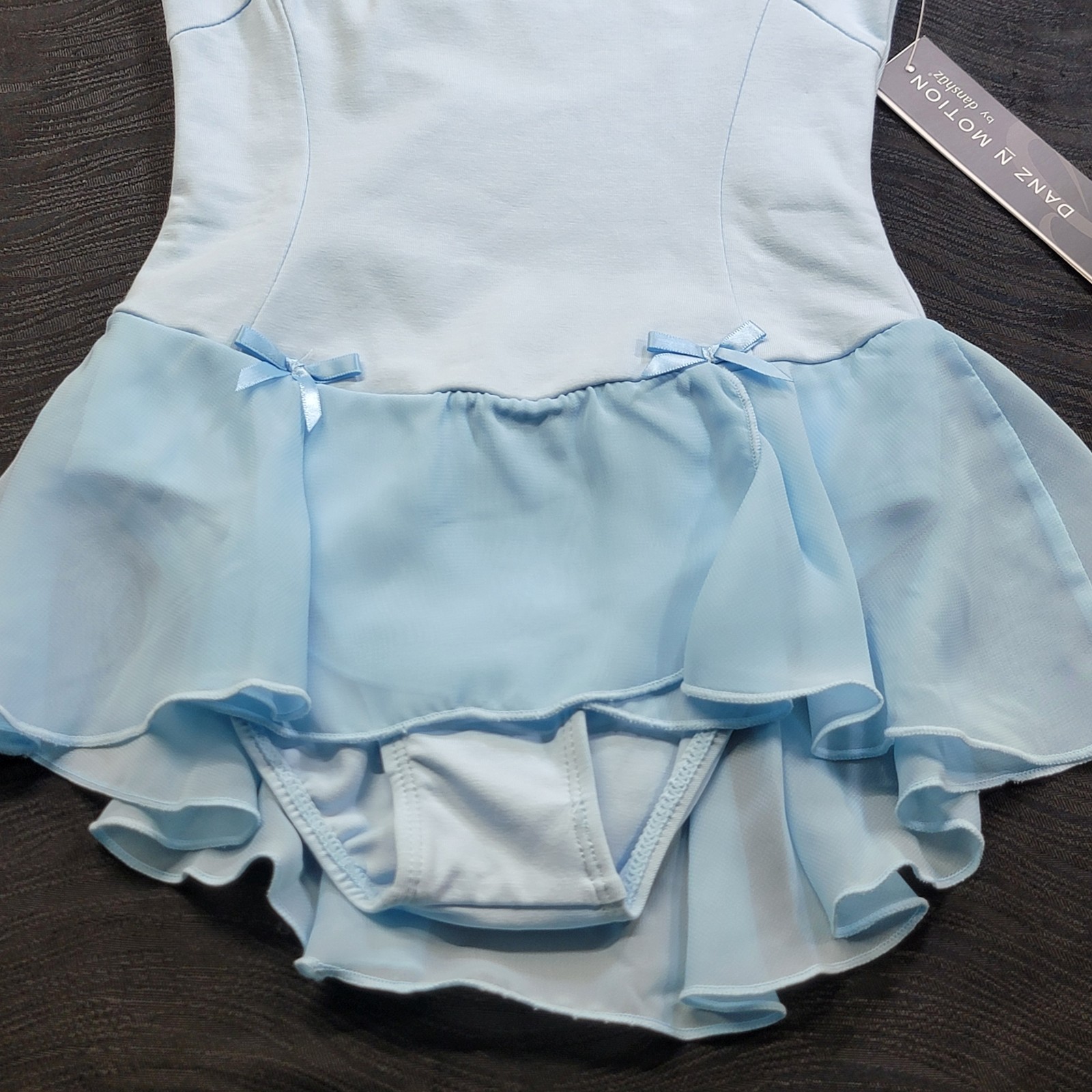 Danz N Motion Blue short Sleeve Skirted Ballet Leotard Chiffon Skirt SZ. 4-6C