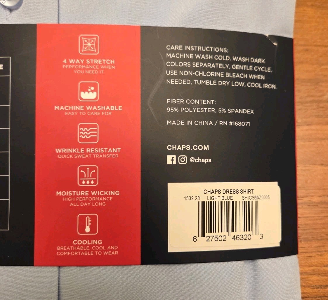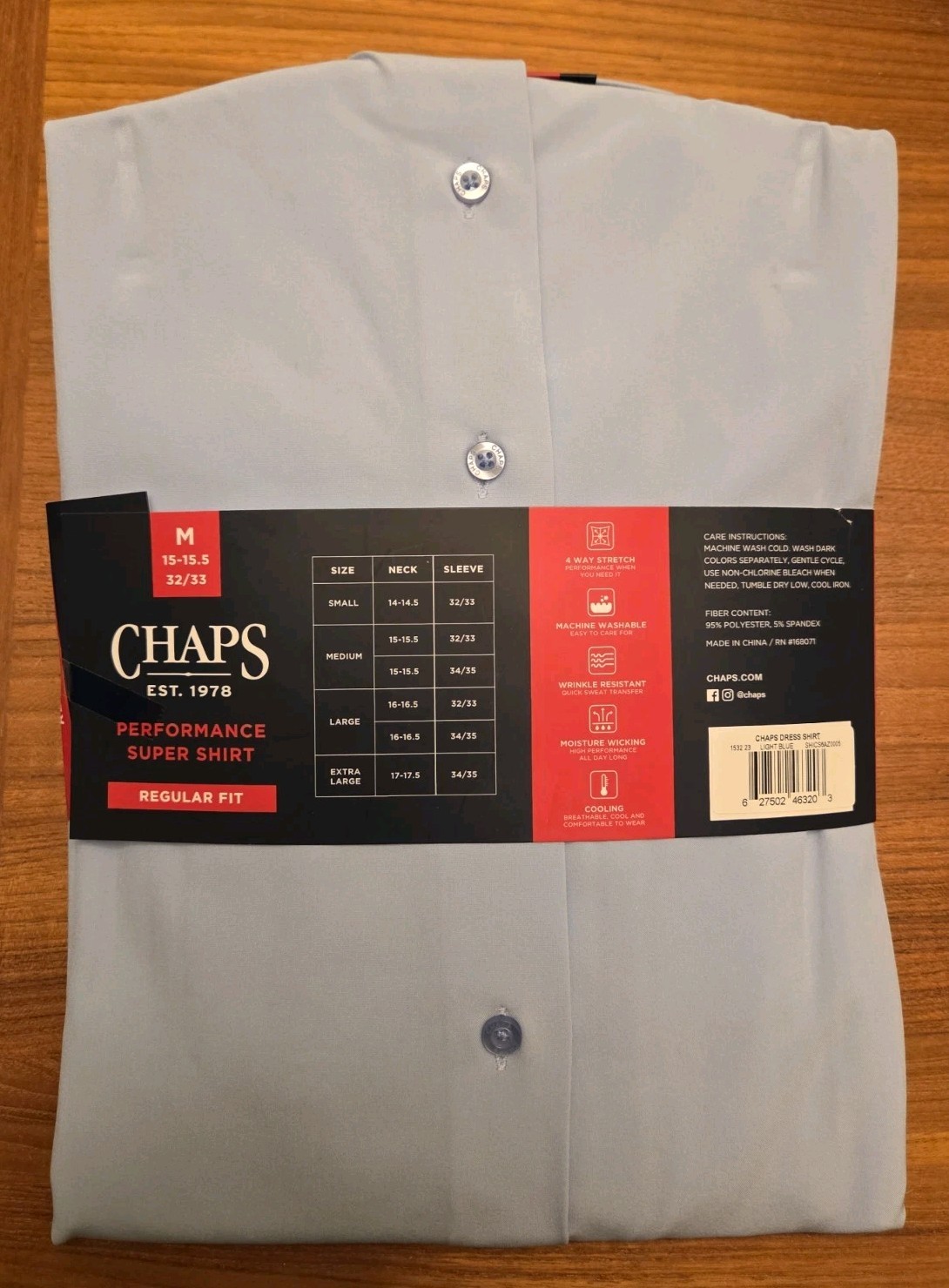 как выглядит Chaps Mens MEDIUM 15-15.5 32/33 Long Sleeve Performance Dress Shirt BLUE 10726 фото