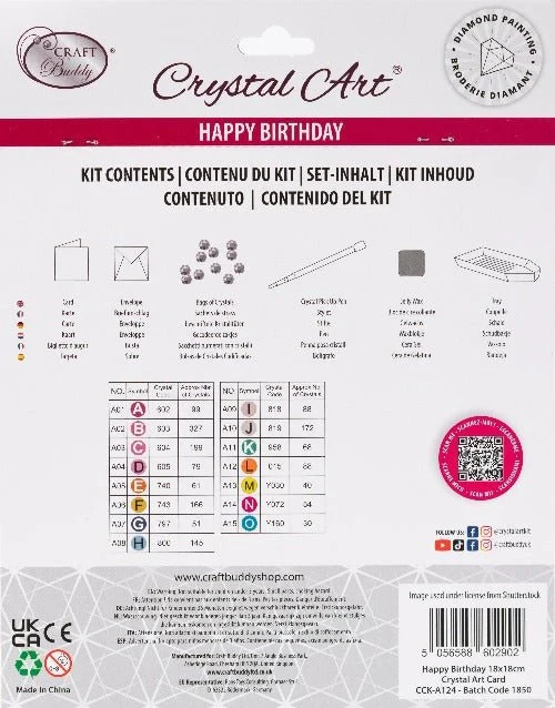 CraftBuddyUS CCK-A124: Happy Birthday Crystal Art Card 18x18cm