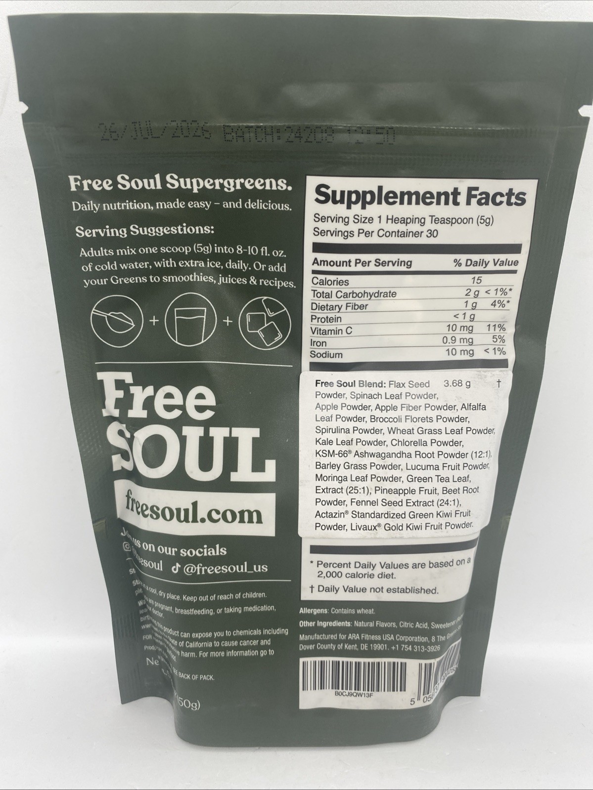Daily Super Greens Powder in Mango Flavor Free Soul 30 portion 5.29oz /exp 07/26