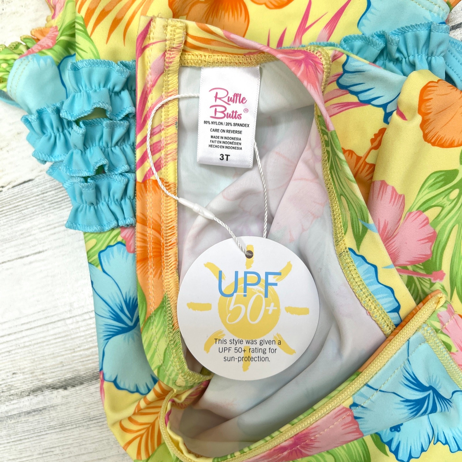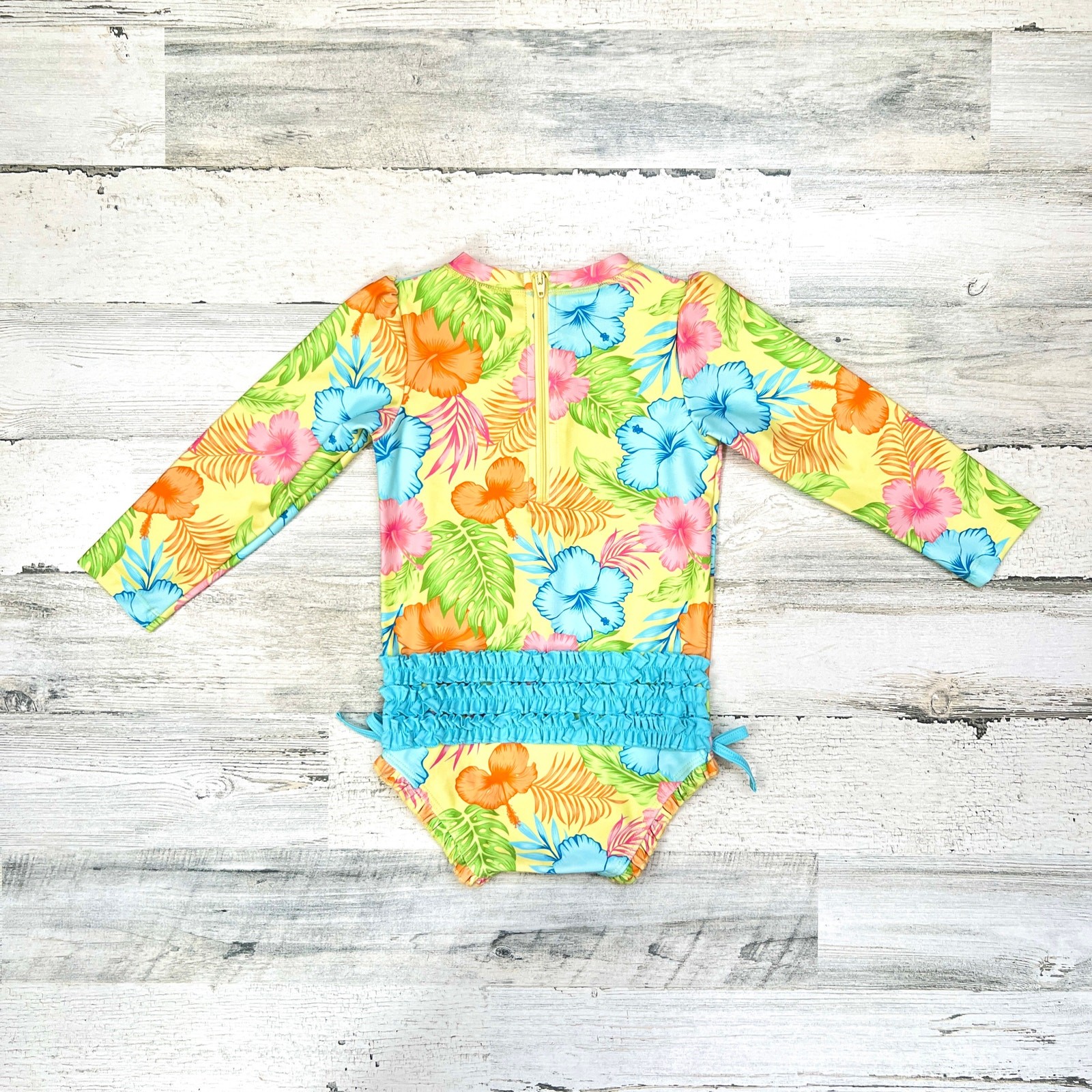Ruffle Butts Girls One Piece Rash Guard 3T Swimsuit Happy Hula Floral Summer New