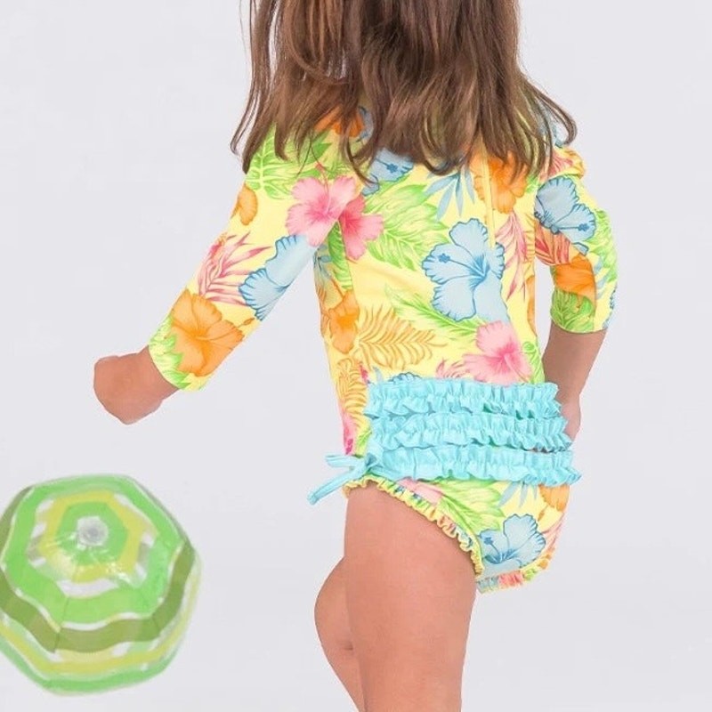 как выглядит Ruffle Butts Girls One Piece Rash Guard 3T Swimsuit Happy Hula Floral Summer New фото