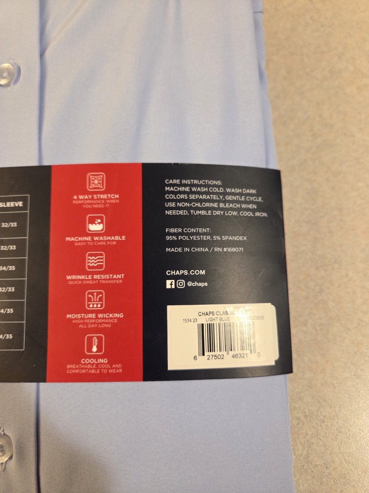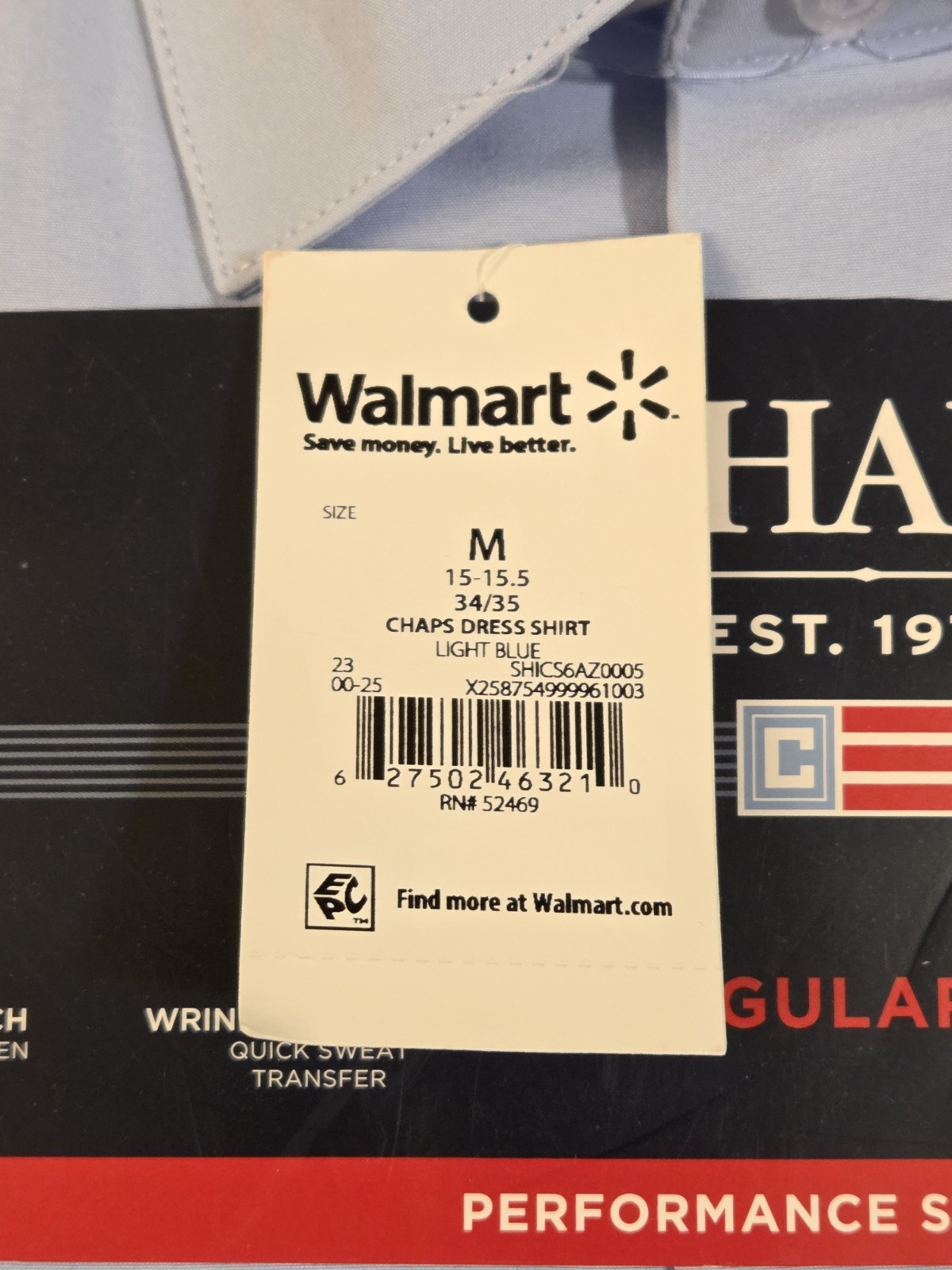 как выглядит Chaps Mens MEDIUM 15-15.5 34/35 Long Sleeve Performance Dress Shirt BLUE 10726 фото