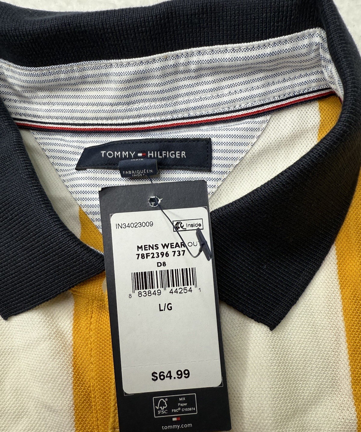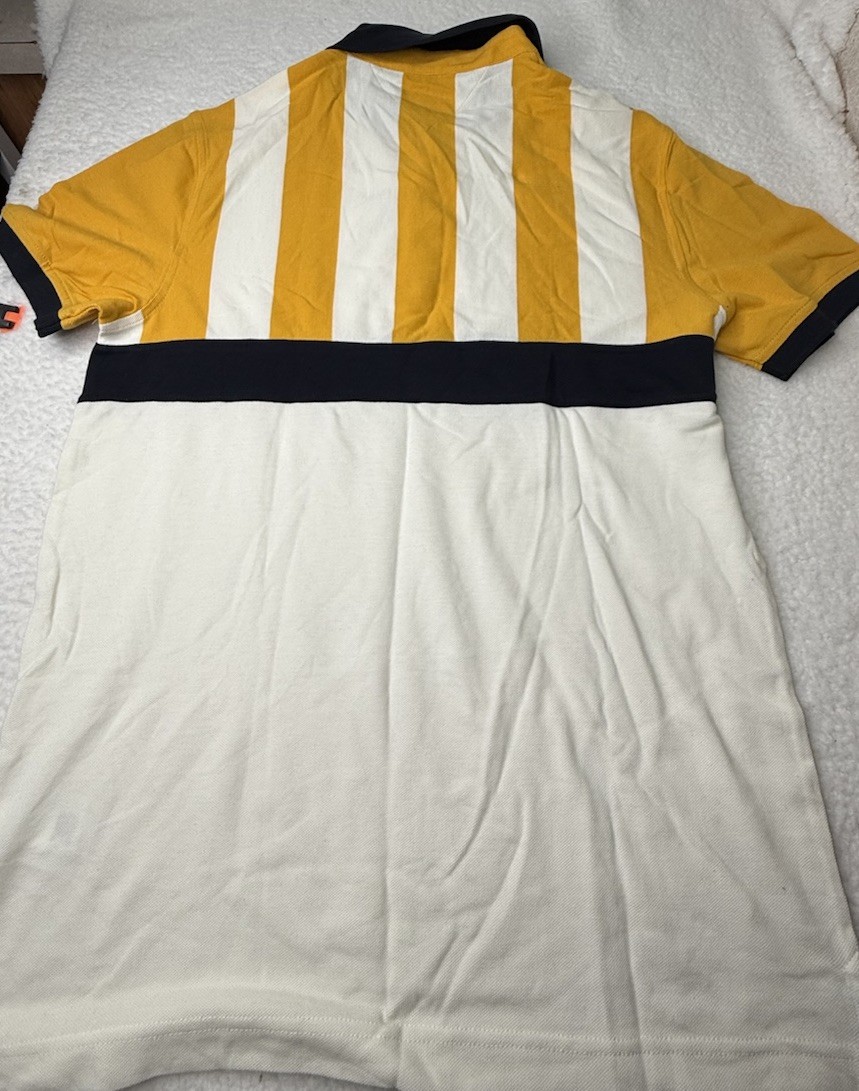 как выглядит Tommy Hilfiger Mens Yellow Striped Slim Fit Polo Shirt Sz L Going Out Preppy фото
