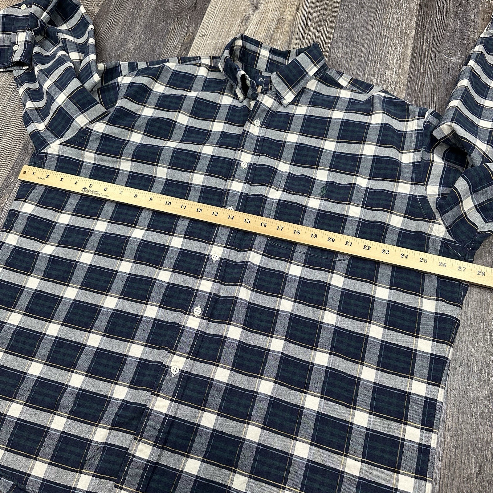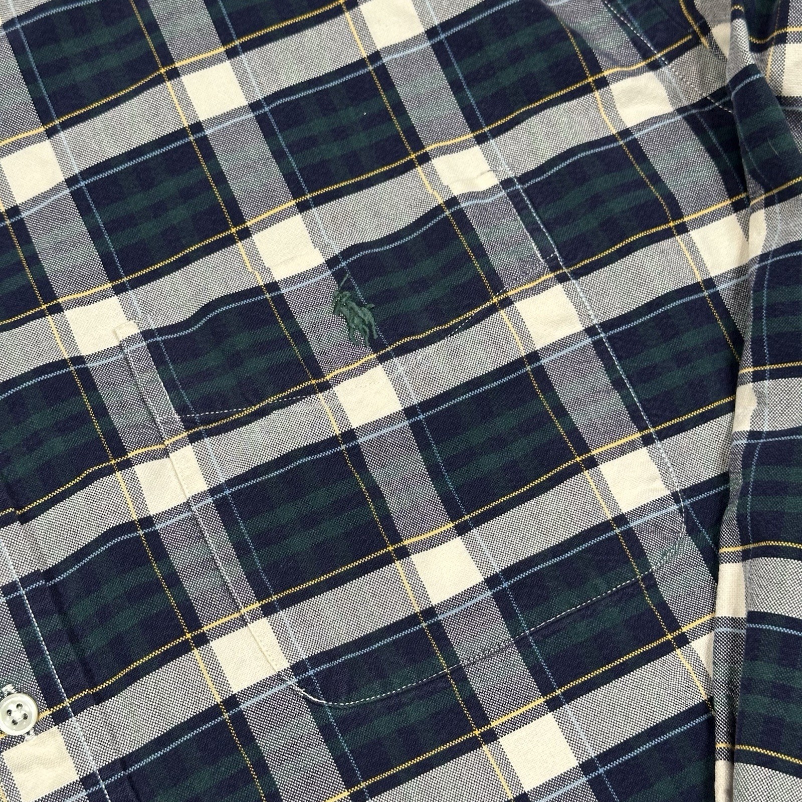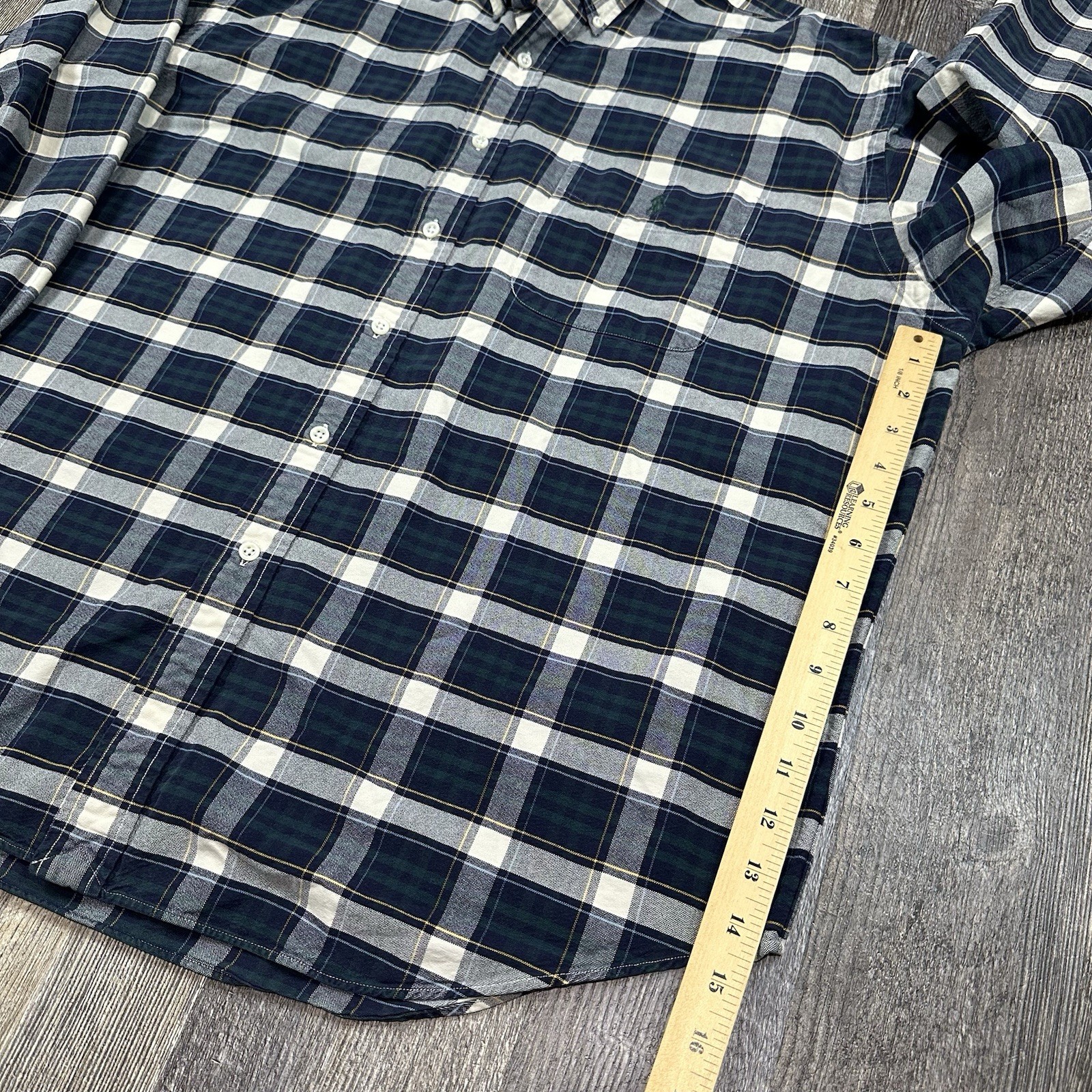 Vintage Polo Ralph Lauren Big Shirt Green Blue Tartan Oxford Button Down Men's L