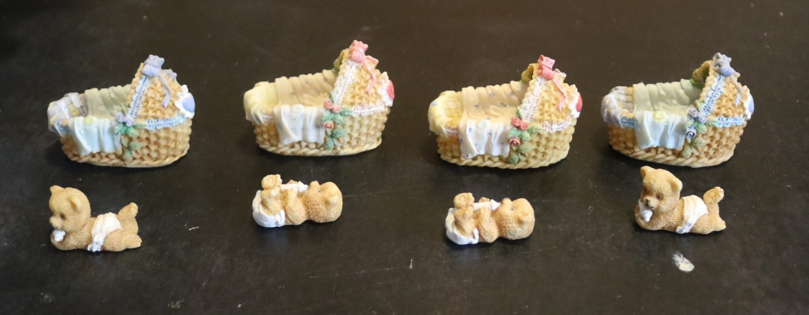 Cherished Teddies Lot of 4 Nurse Bears w/ Bassinets Enesco Figurines Vintage