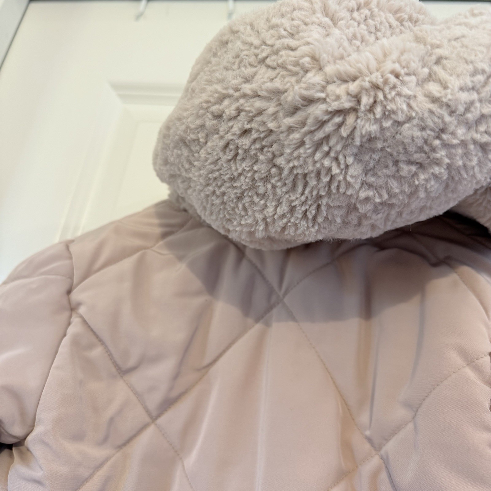 как выглядит Zara Cozy Quilted Jacket snaps zip fleece lined hood muted pink size 2-3 years фото