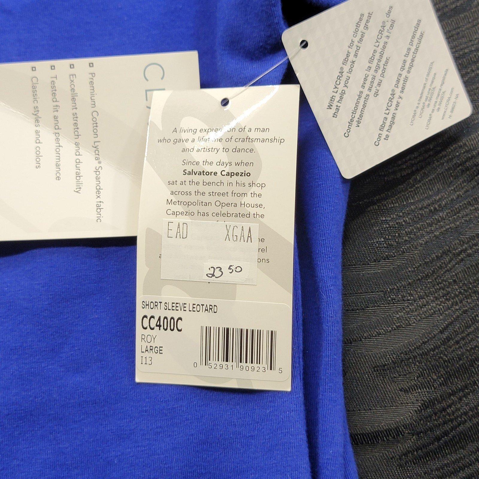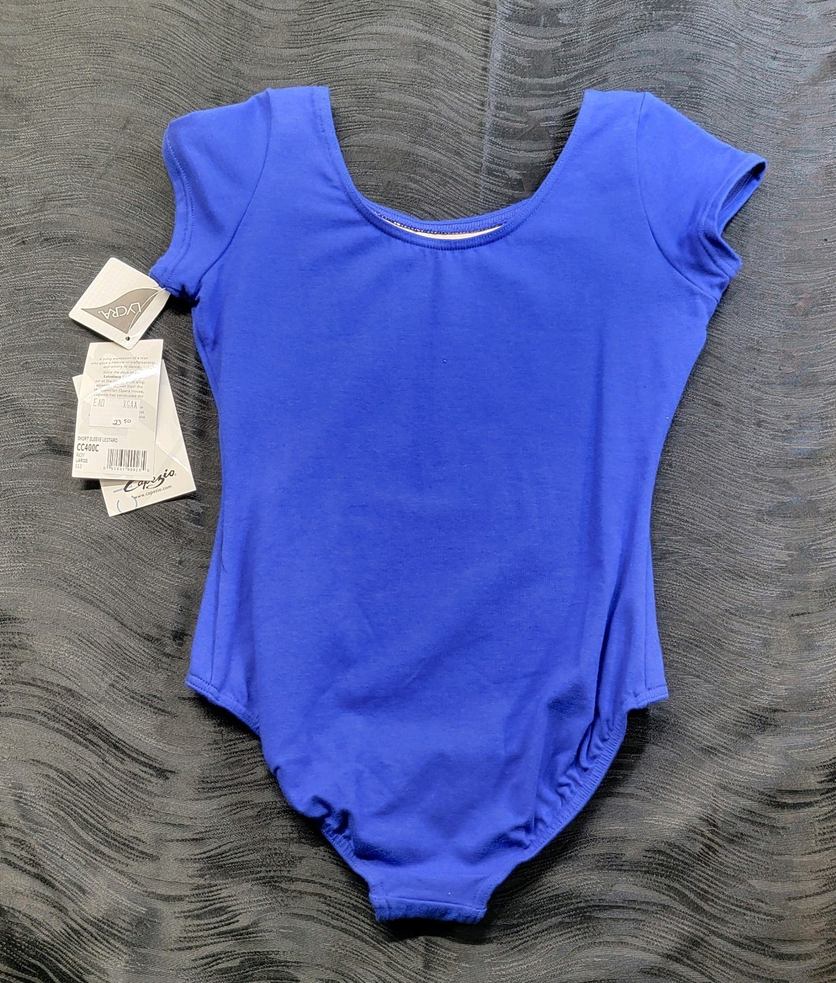 Capezio Short Sleeve Leotard Royal Blue scoop Front/Back Ballet Leg Lined SZ LC