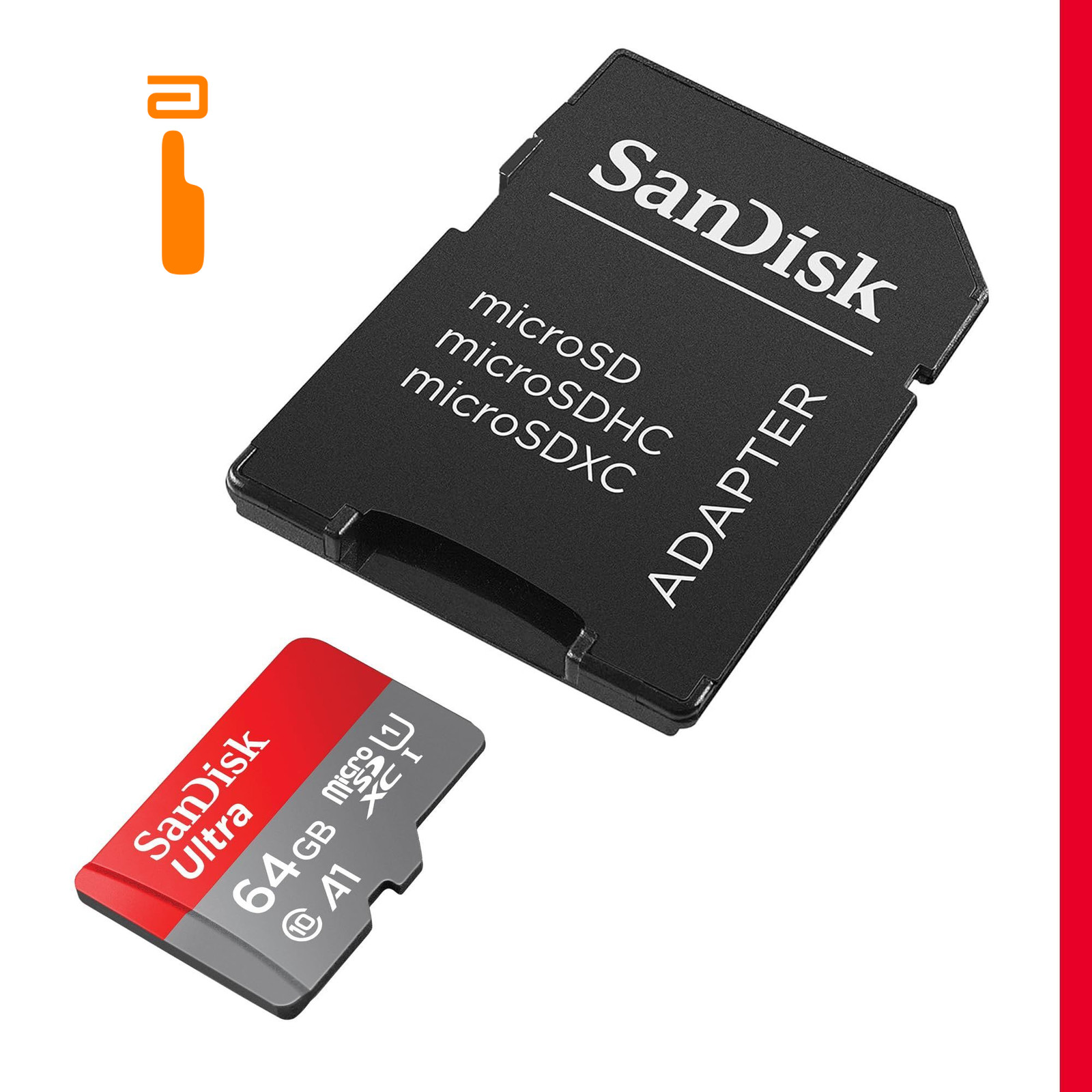 как выглядит SanDisk 64GB Ultra microSDXC UHS-I Memory Card with Adapter - Up to 64GB, Red фото