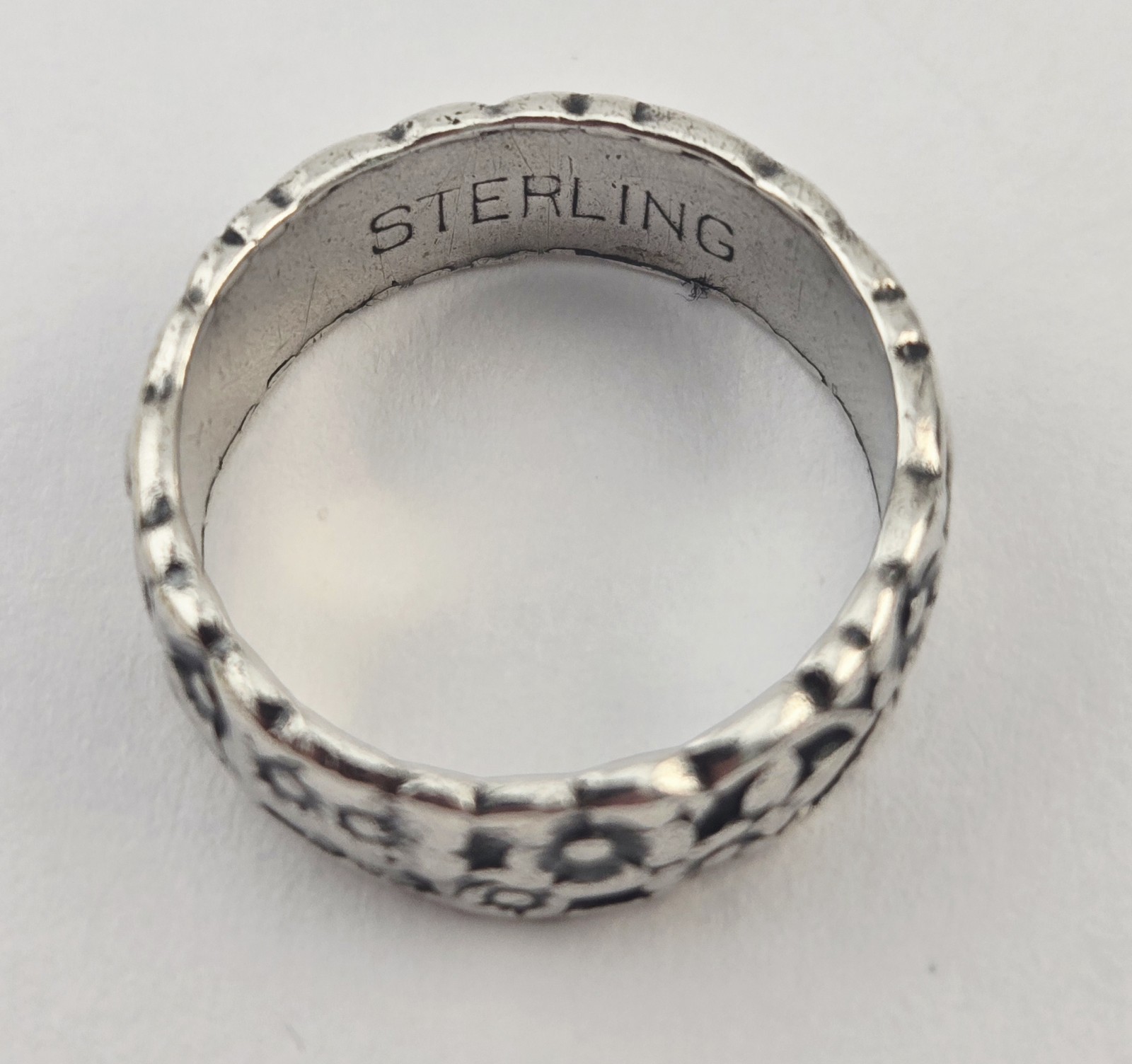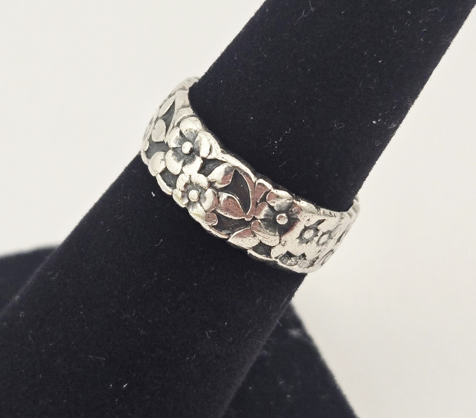 Vintage Sterling Silver Floral Band Ring Size 5.5 Solid 925 Flower Design - 4.2g