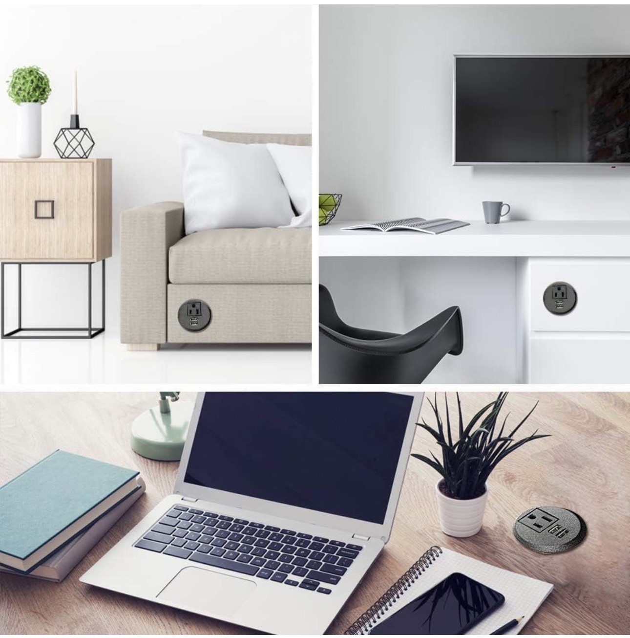 как выглядит 2 Hole Desktop Power Grommet, 1 Outlet, 2 USB Ports, 5ft Cord, Table Mount фото