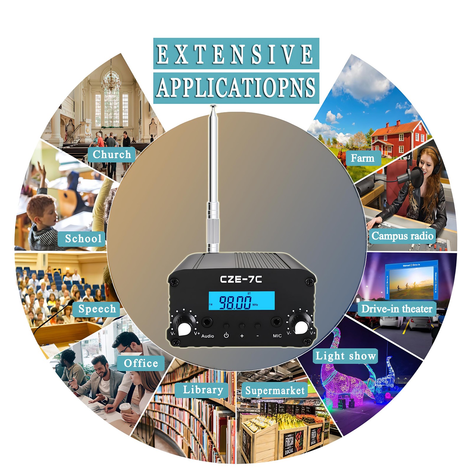 CUIAMAO FM Transmitter, 1/7W Long Range Stereo Radio Broadcast Small, 7C