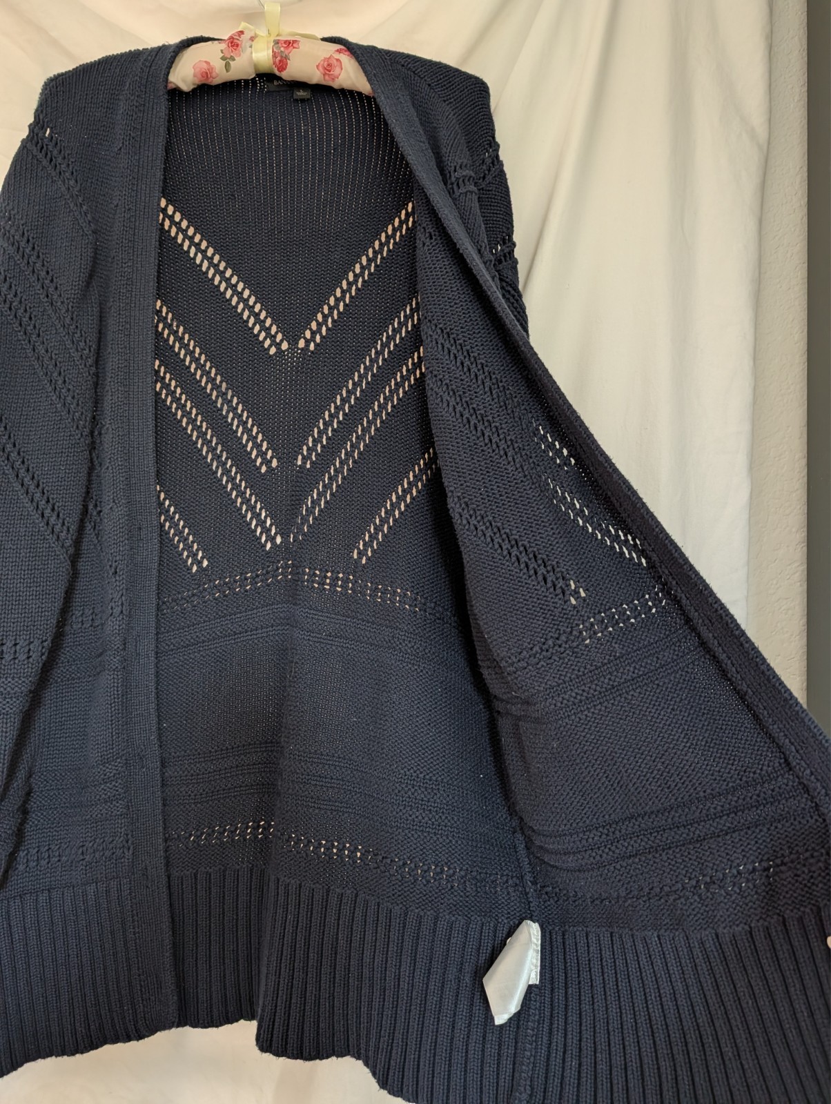 Banana Republic Women's Navy Long Cardigan Shawl Crochet details size Large