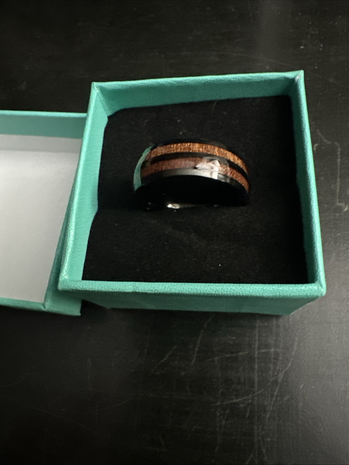 Men s Whiskey Barrel Wood Inlay Ring, Size 10