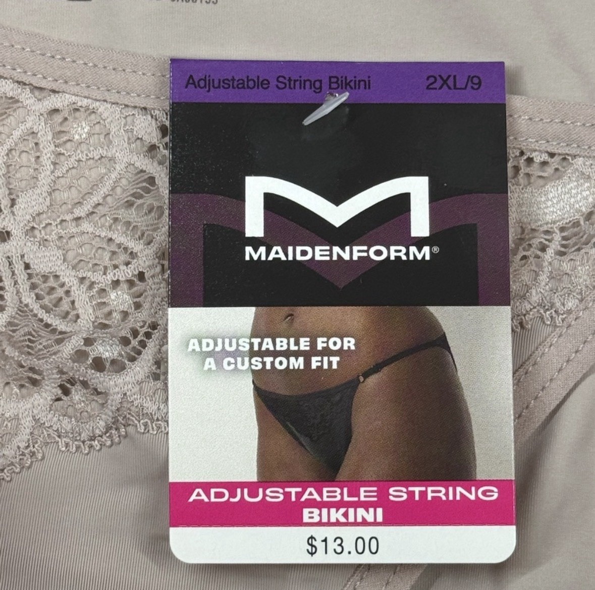 MAIDENFORM Women s Beige Adjustable String Thong Underwear Panty Size 2XL