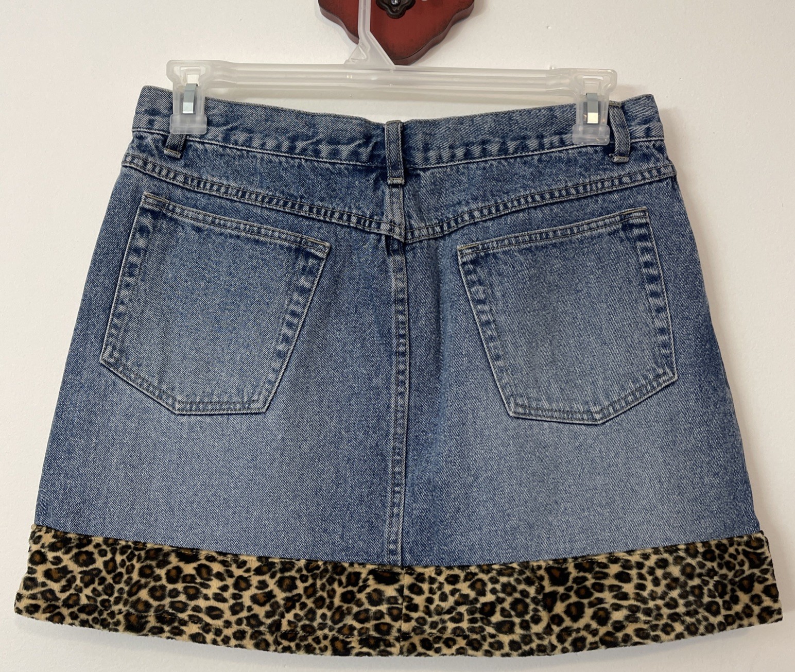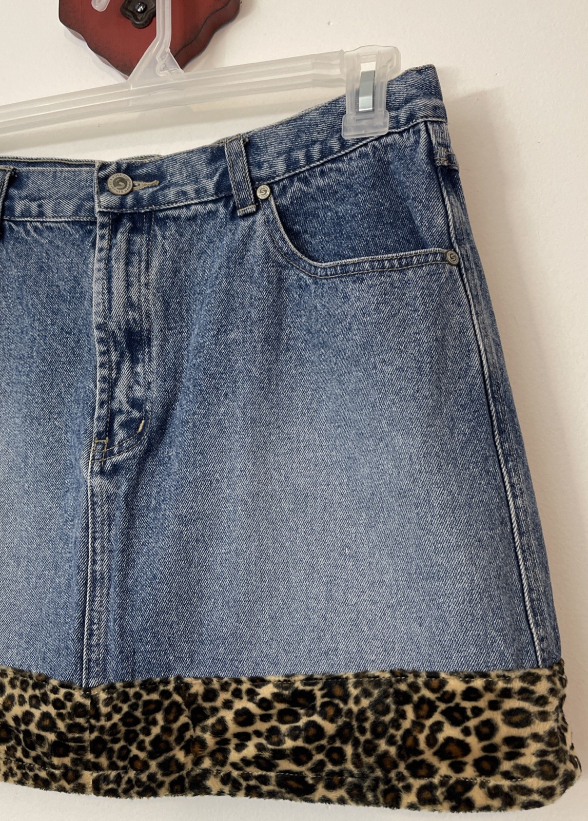 Stephen Hardy Squeeze Womens 13/14 Blue Denim Cheetah-Print Short Skirt A1397