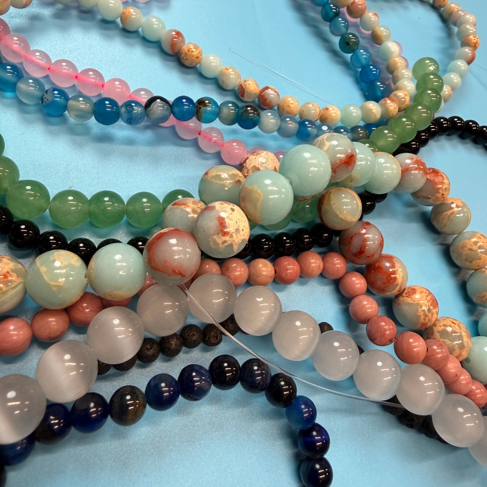 Set of 10 Natural Gemstone Round Beads Strands 15 Sizes 6,8,10 mm 10oz B28