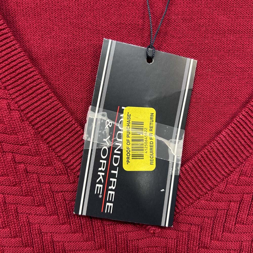 Roundtree Yorke Sweater Mens 3XLT Harringbone Red V-Neck Vest NWT