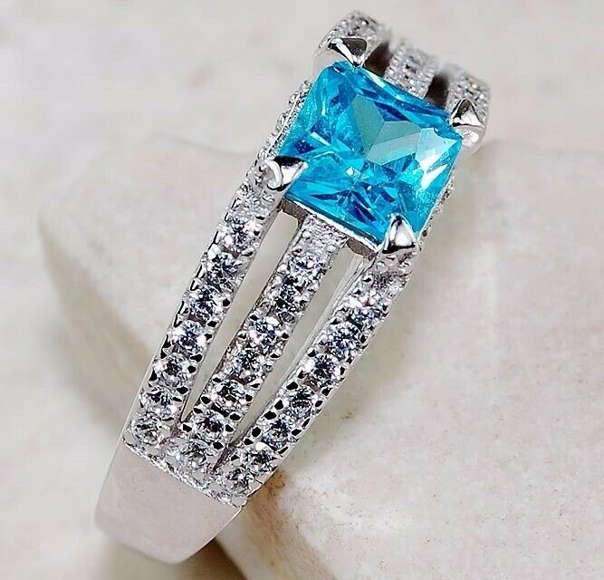 как выглядит 3CT Aquamarine White Topaz 925 Solid Sterling Silver Ring Sz 8 UB3-9 фото
