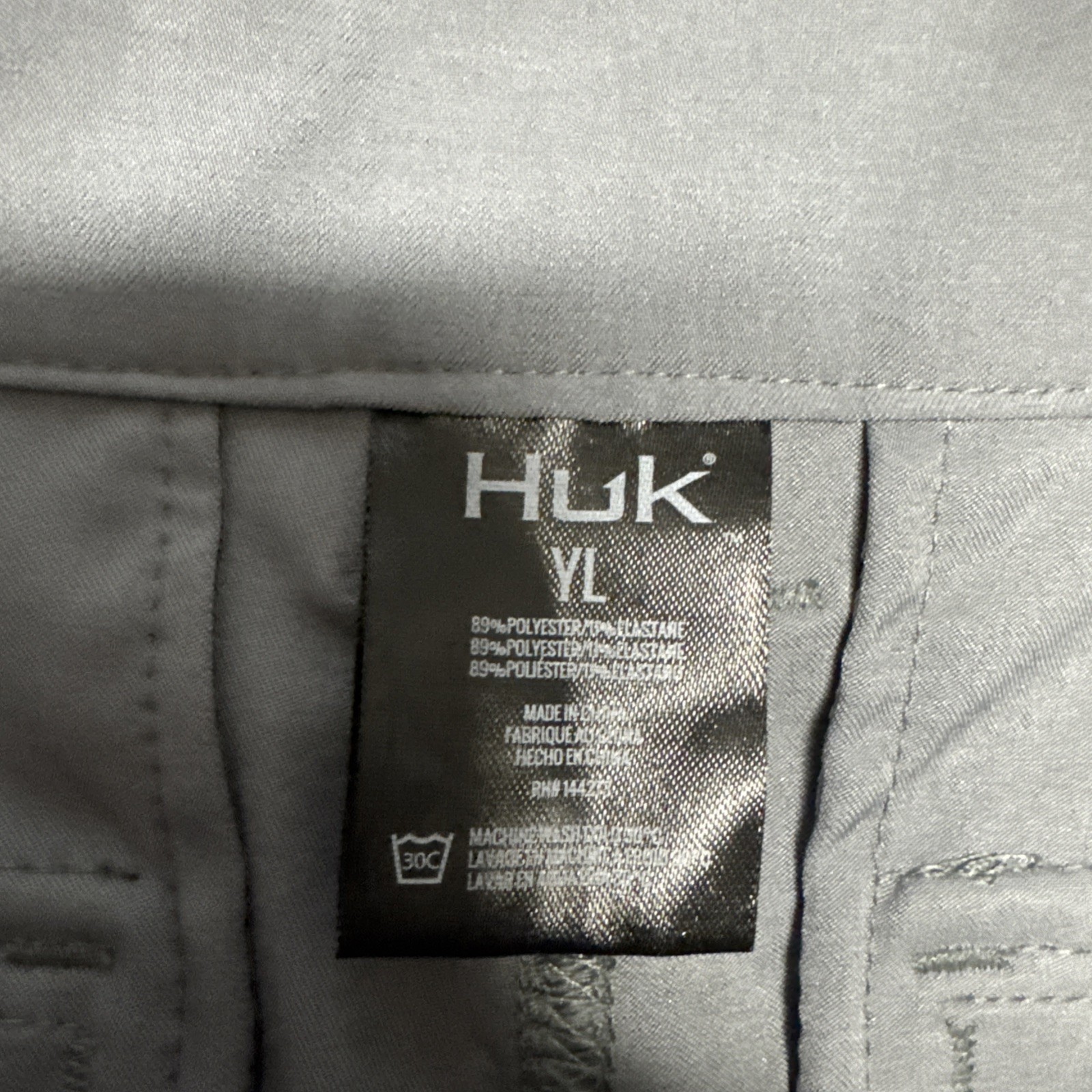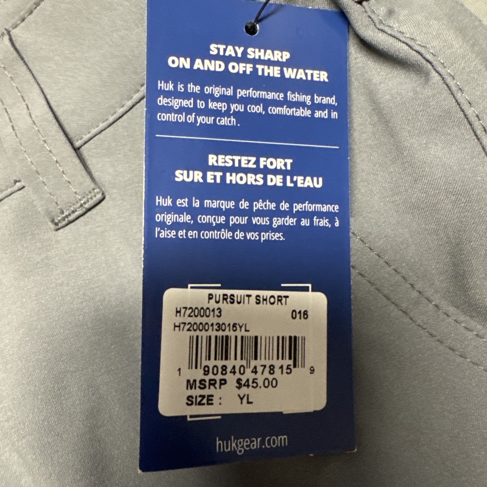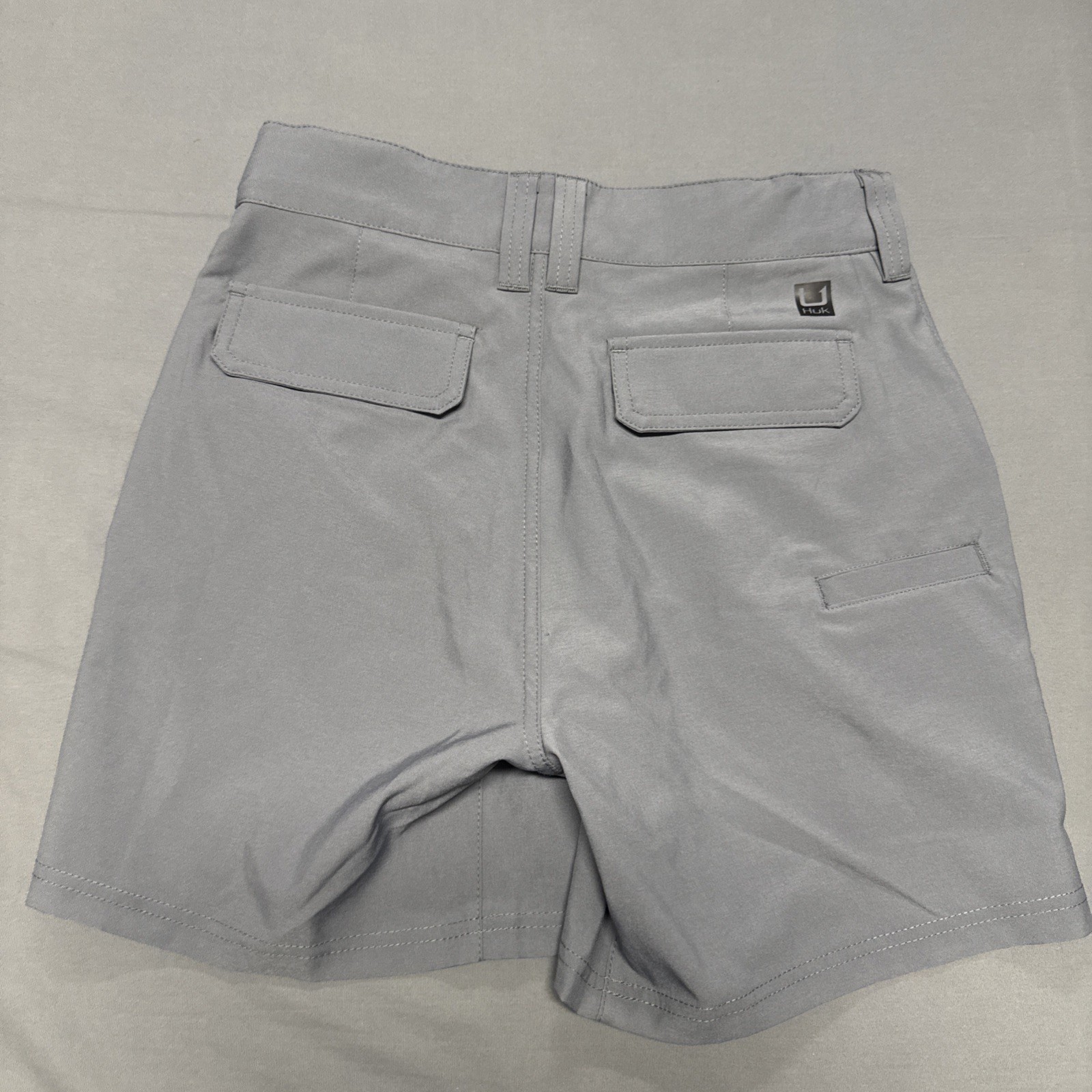 New Huk Youth Large Gray Performance Hidden Elastic Waist Shorts Above Knee