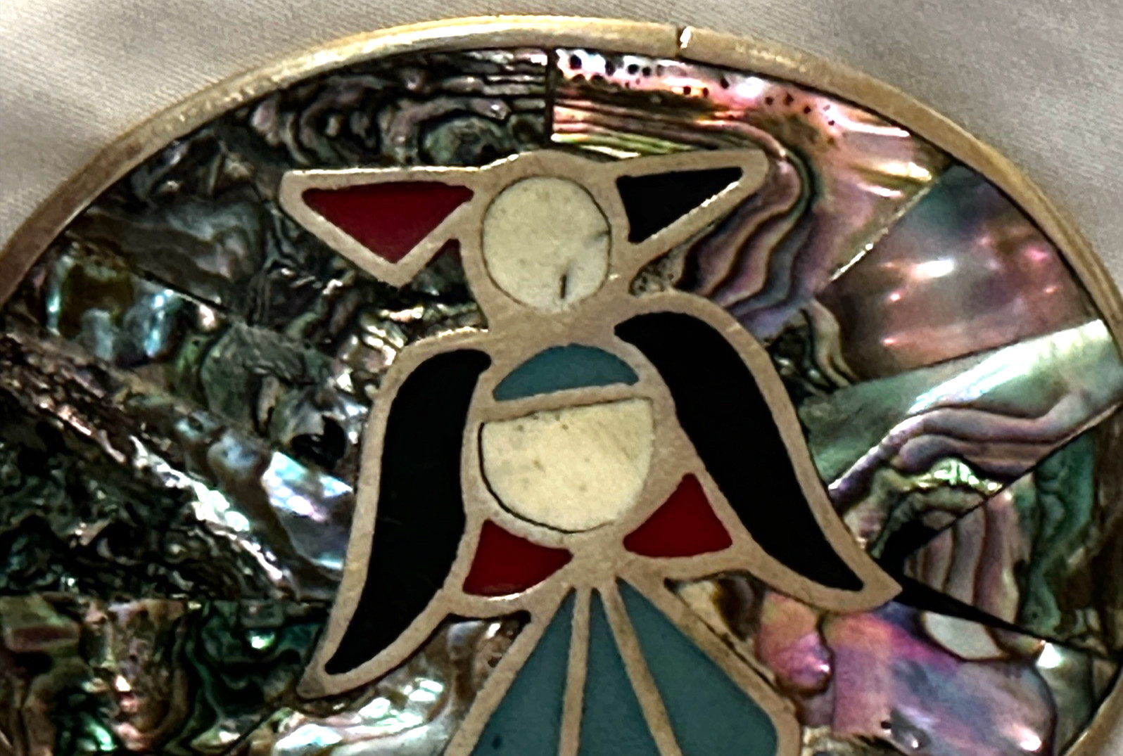 как выглядит Vintage belt buckle Alpaca MEXICO Abalone shell inlay oval shape 3.25x2.5" фото