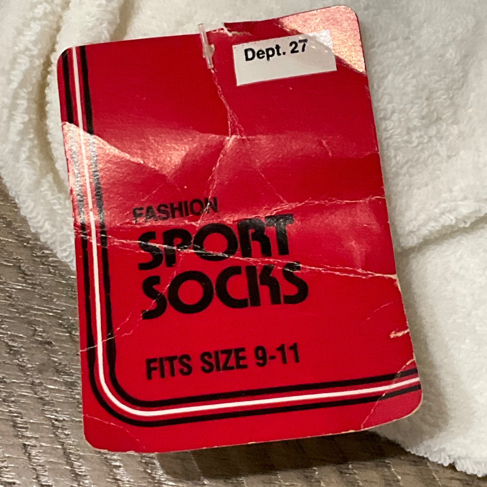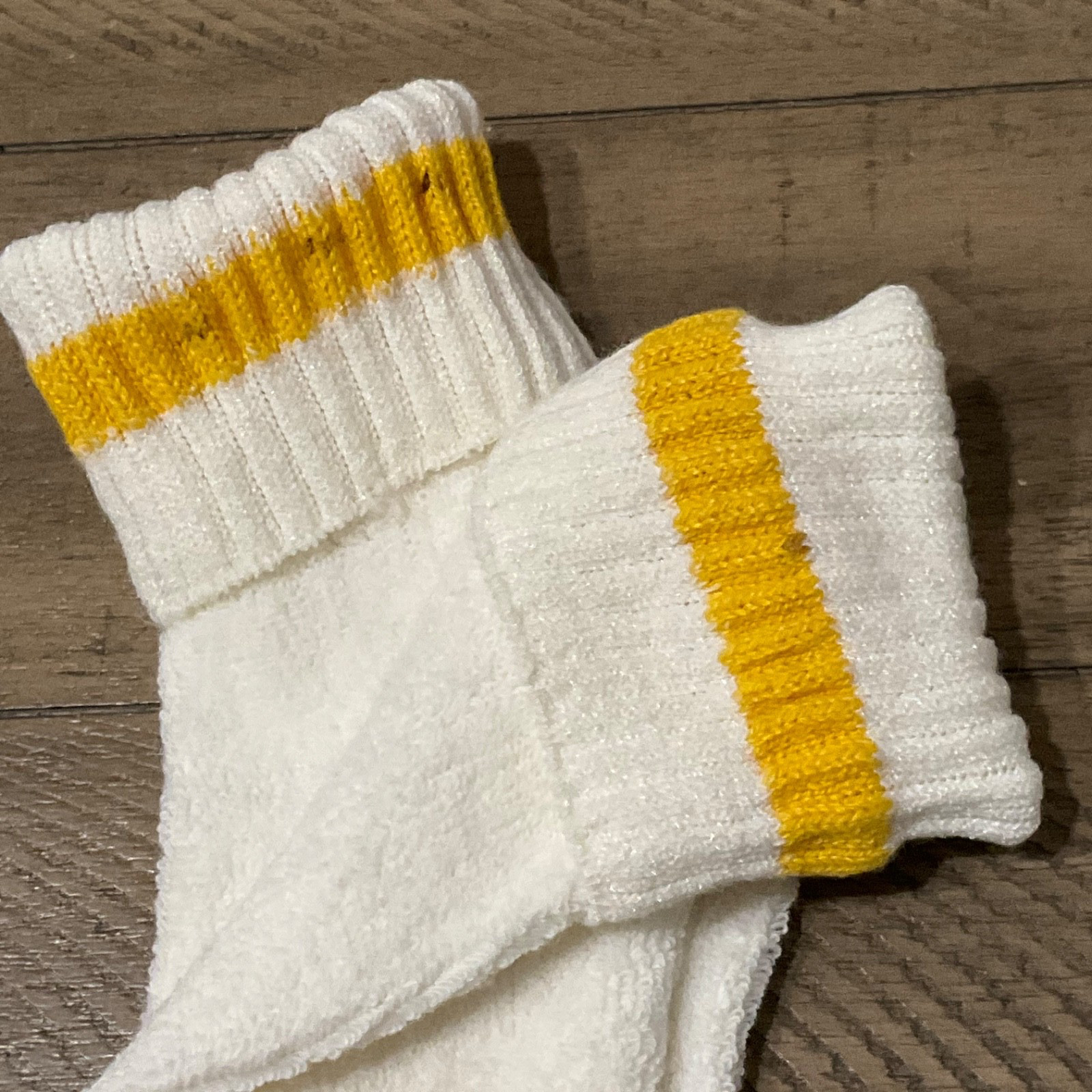 NWT VTG Ladies Sport Socks Terry Cuff Yellow Striped Roll Up NOS 1980's READ