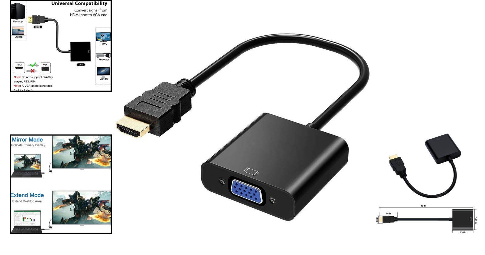 HDMI to VGA Adapter for Projectors and Monitors - Plug and Play