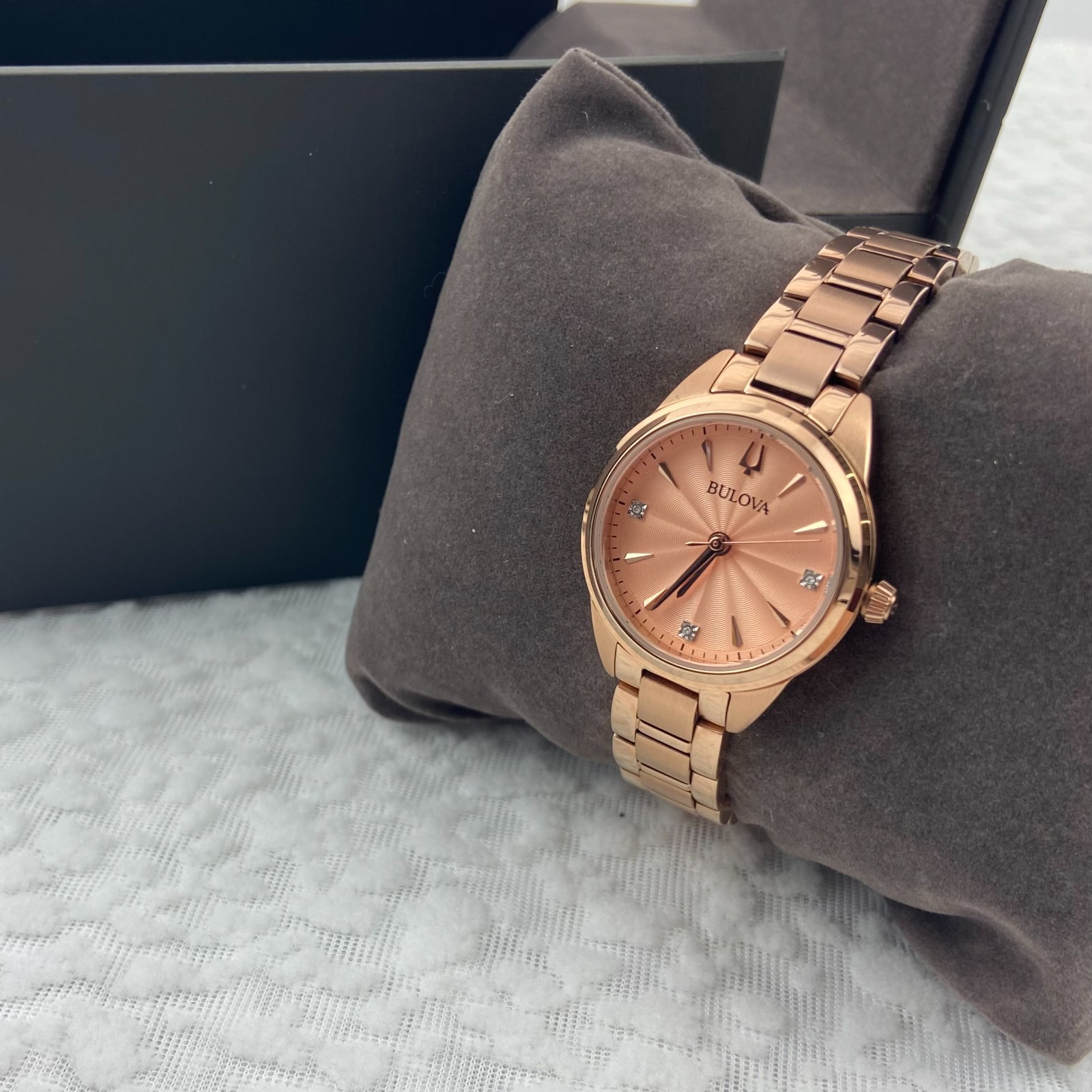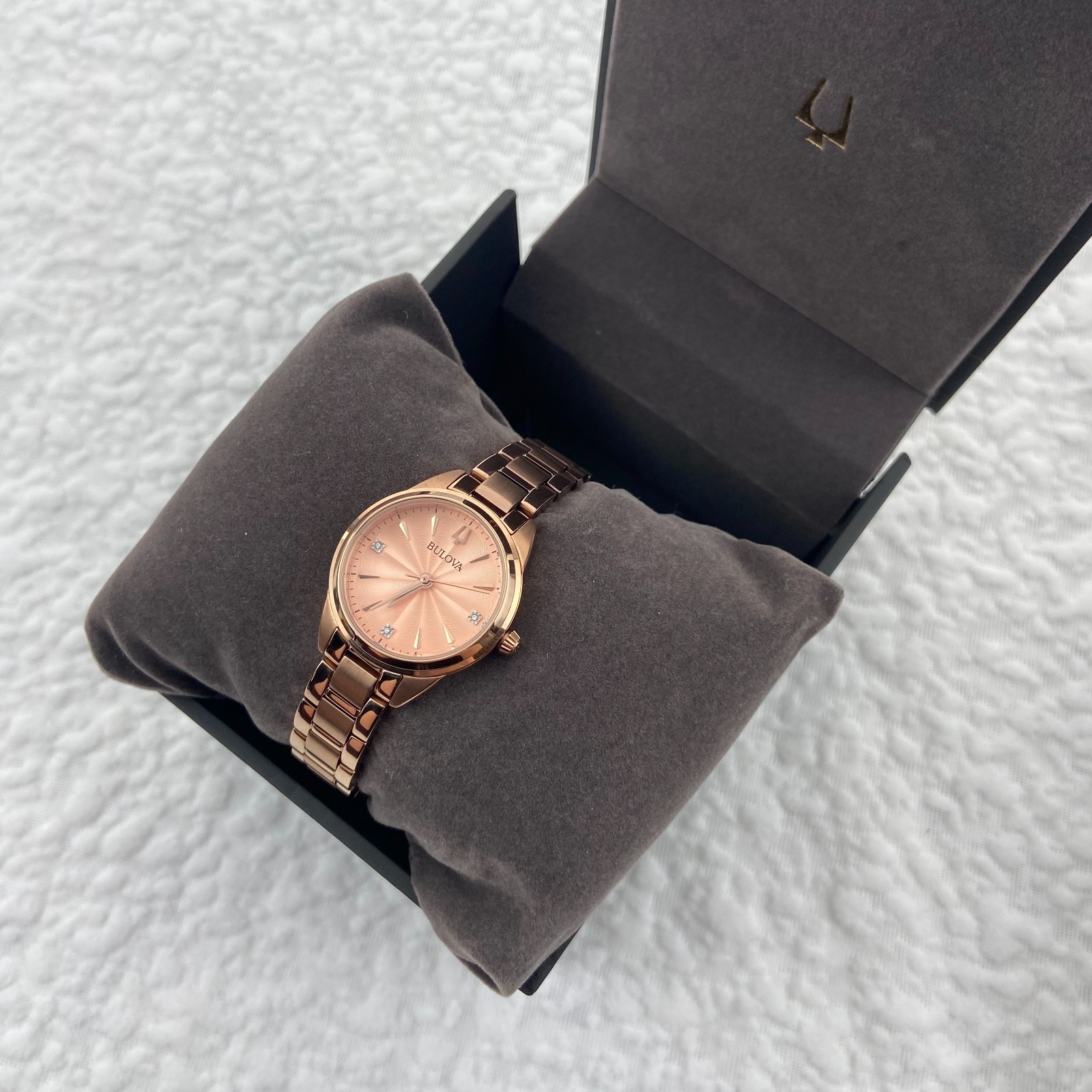 Bulova Sutton Women's Watch 97P151 Diamond Rose Gold Dial Quartz Stainless Steel
