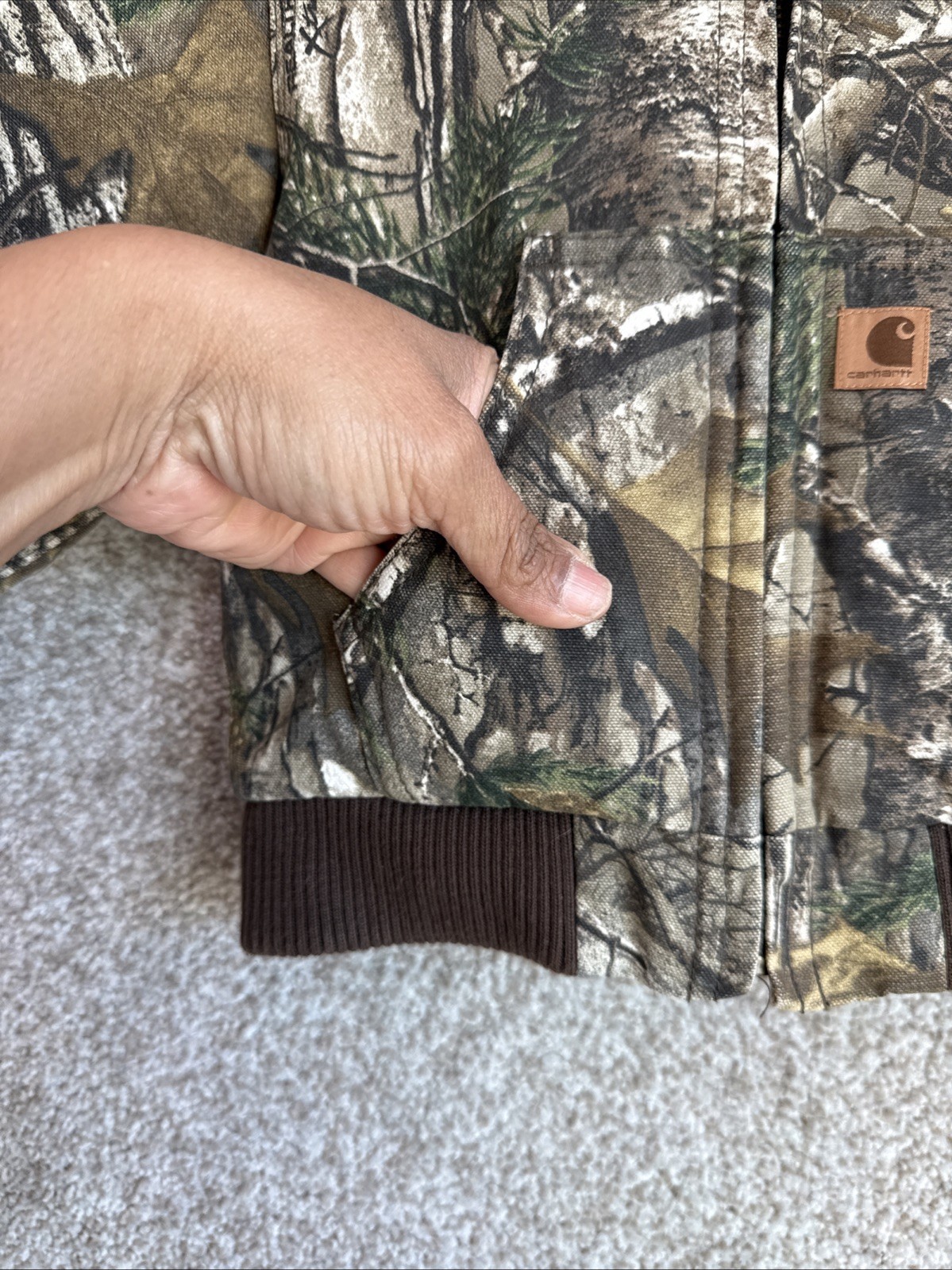как выглядит Carhartt Realtree Hooded Camo Quilt Lining Canvas Jacket Coat Toddler Size 18M фото
