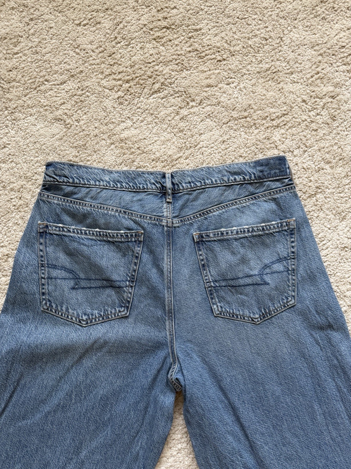 American Eagle Outfitters Women's Blue Denim Super High-Rise Baggy Wide-Leg Jea