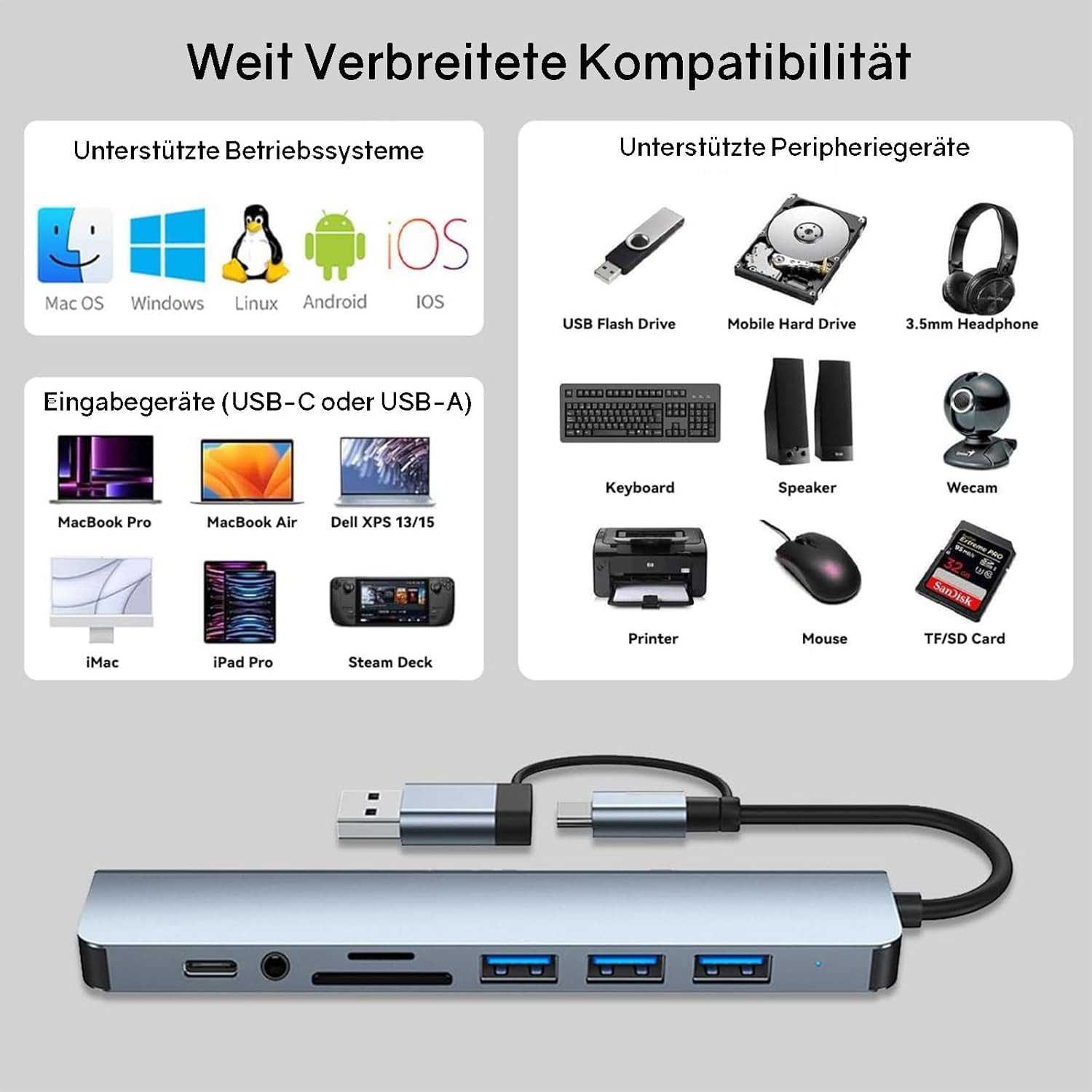 как выглядит Adapter USB C HUB Type 8 Port 5G Speed Multi USB Splitter For PC Laptop Macbook фото